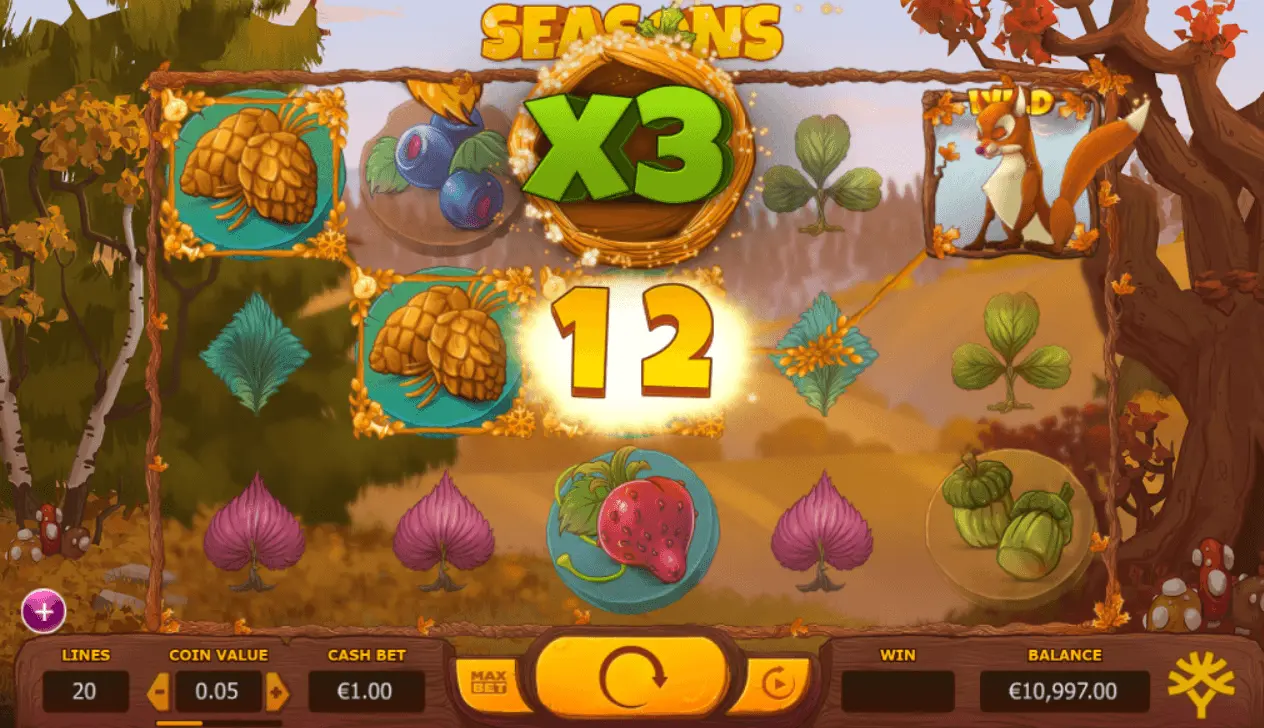 These 4 animals and seasons includes Winter Hare Wilds, Spring Owl Wilds, Summer Deer Wilds and Autumn Fox Wilds. While all these wilds have one common property in Seasons slots, to act as a substitution symbol in replacing all other low payout symbols, the effective payout varies imminently.