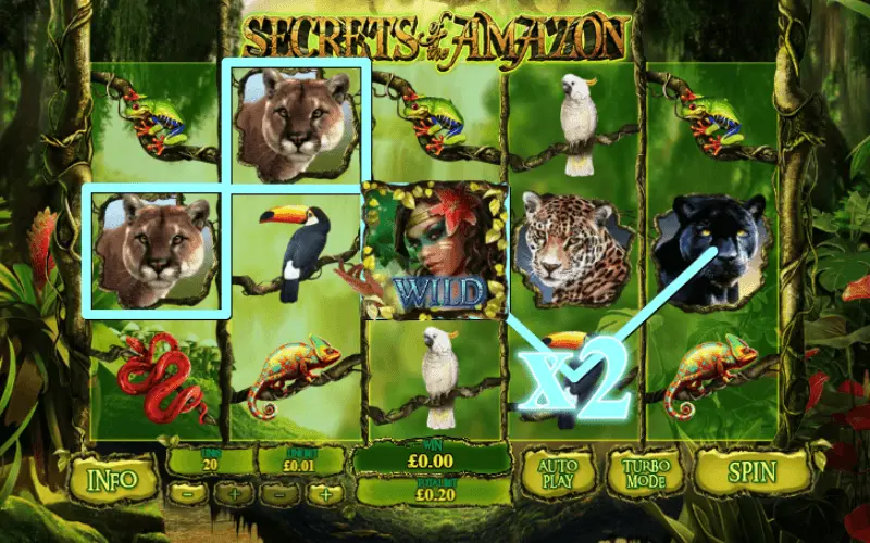 Secrets of the Amazon slot is based on Jungle thematic, but you will be able to detect aspects from Wild, Cats, Animal thematics as well. Certainly, if you are fond of any of recent slot machine thematics – experience you get from discovering all features of this online slot machine will be completely impressive.