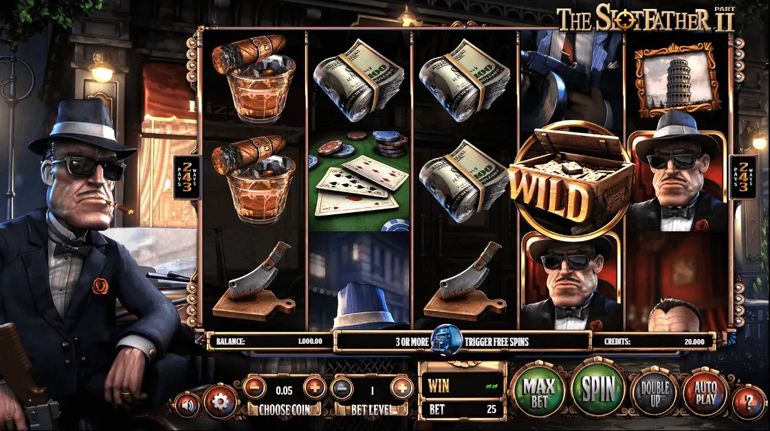- Wild symbol in this game is a crate filled with gold that replaces all other symbols apart from the scatter symbol. Truck, the scatter symbol, gets you Slotfather II free spins feature if you land 3 or more of them. All your winnings are doubled when during the free spin feature. One of the most interesting features is Big Boss Bonus. You get this when free spins feature ends.