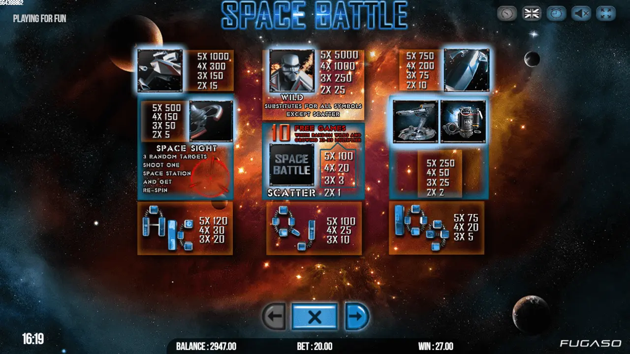 It would be a crime not to mention Future Gaming Solutions in this Space Battle slot review 2026. Mentioned gaming software provider makes superior real money play slots. Therefore, presupposing that you search for Space casino to play – check for logotype at the bottom of casino page.
