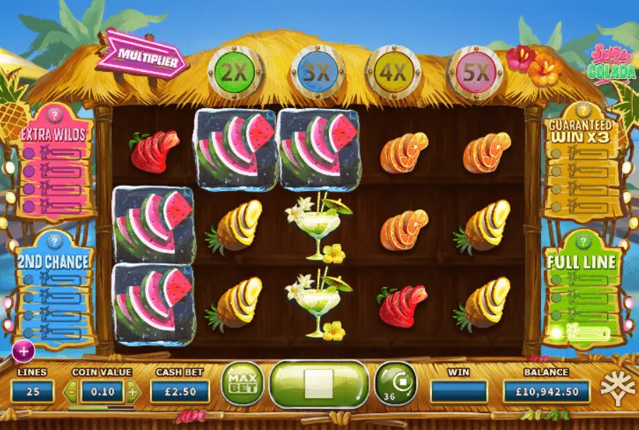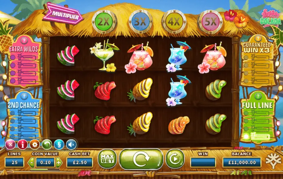 Spina Colada slot is a 5-reel and 25 pay lines video online slot machine, created in 2017. Definitely, game can be labeled as recent and great.