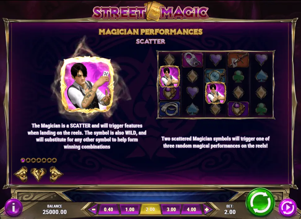 Magic, tricks and wiles in ♣️ Street Magic slot. Fill your pockets with $333 Free welcome bonus and start to show your own magic.