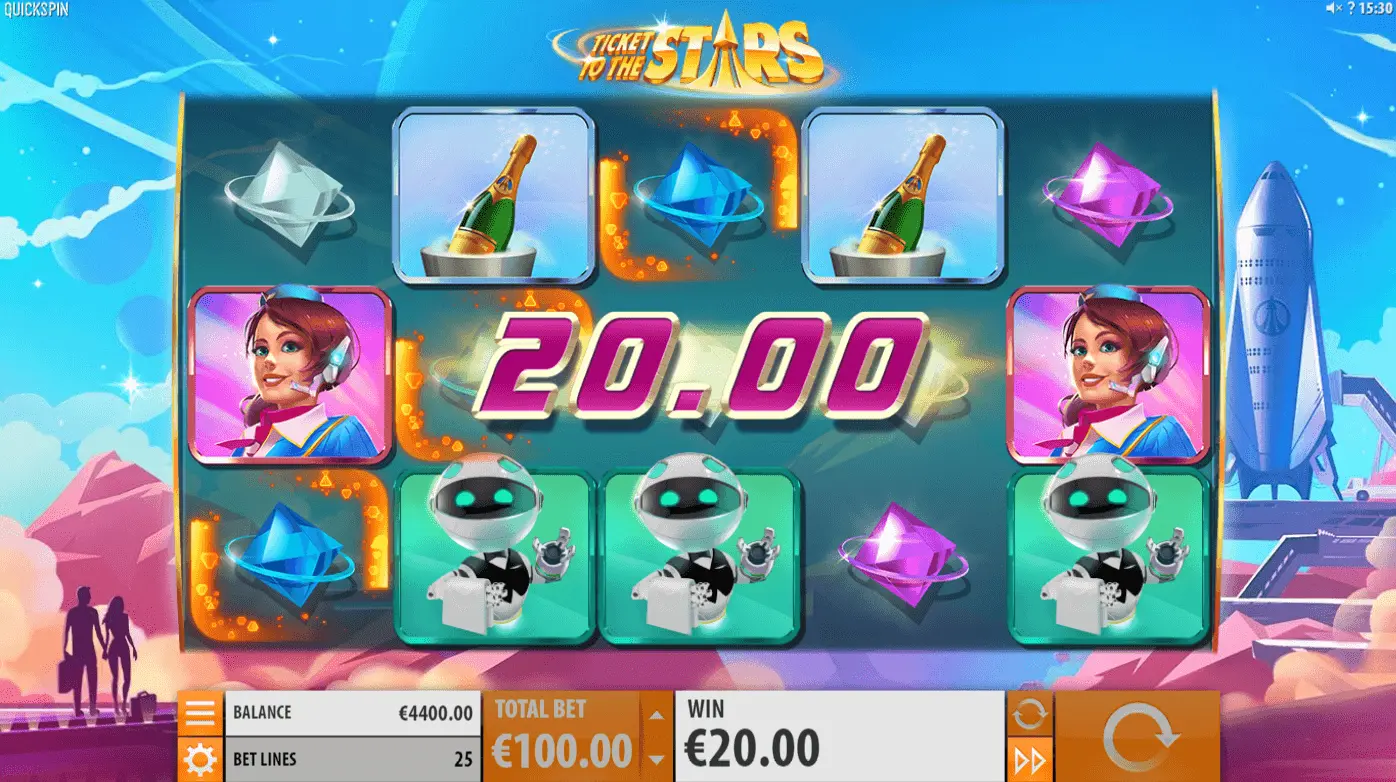 It would be a crime not to talk about Quickspin in this Ticket To The Stars slot review 2026. Mentioned casino games developer produces classy real money play online slots. Hence, in case you search for Ticket casino to play – check for logo at the footer of casino site.