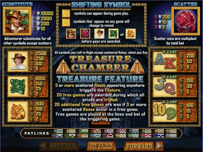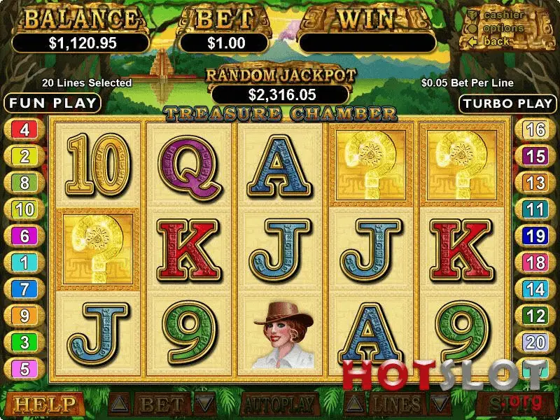 Treasure Chamber slot has 5-reel as well as 20 pay-line progressive online slot, launched in 2006. Definitely, game must be labeled as well-established.