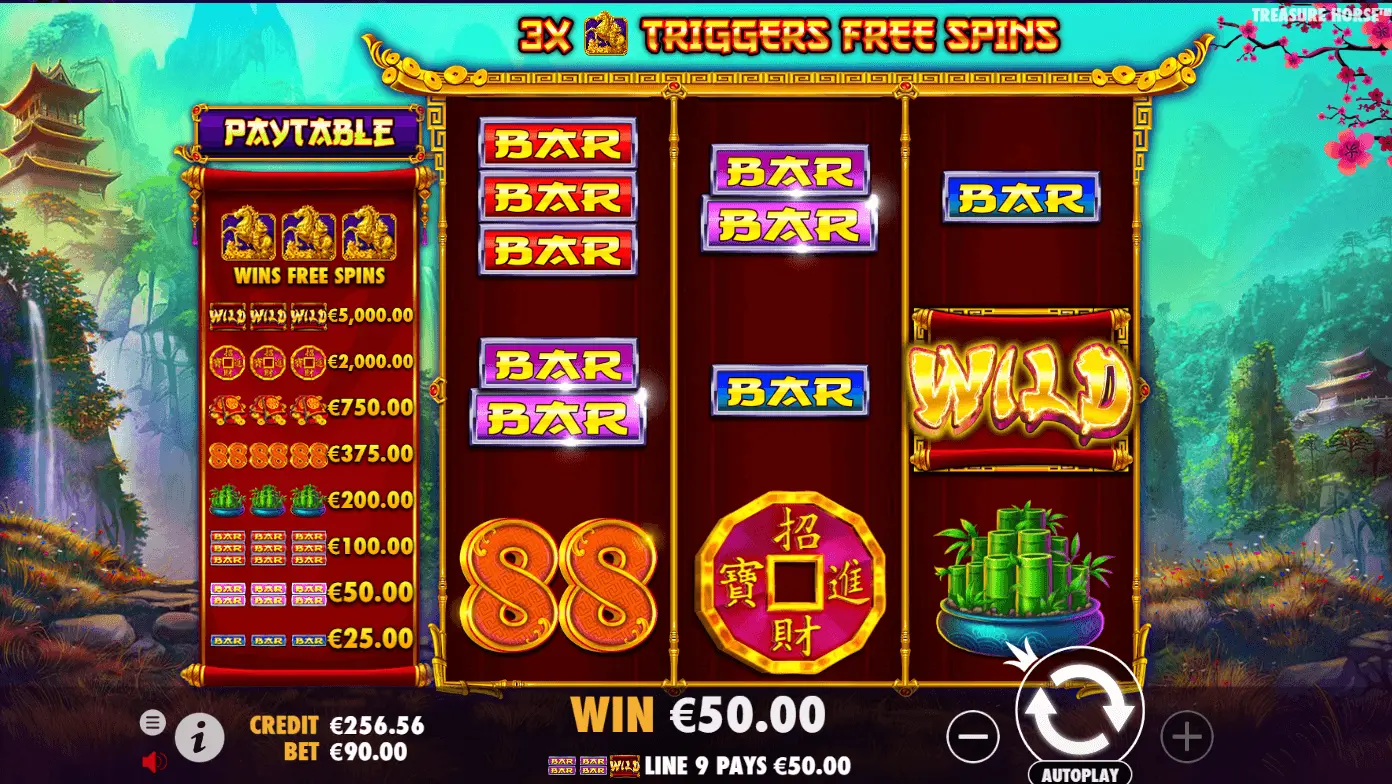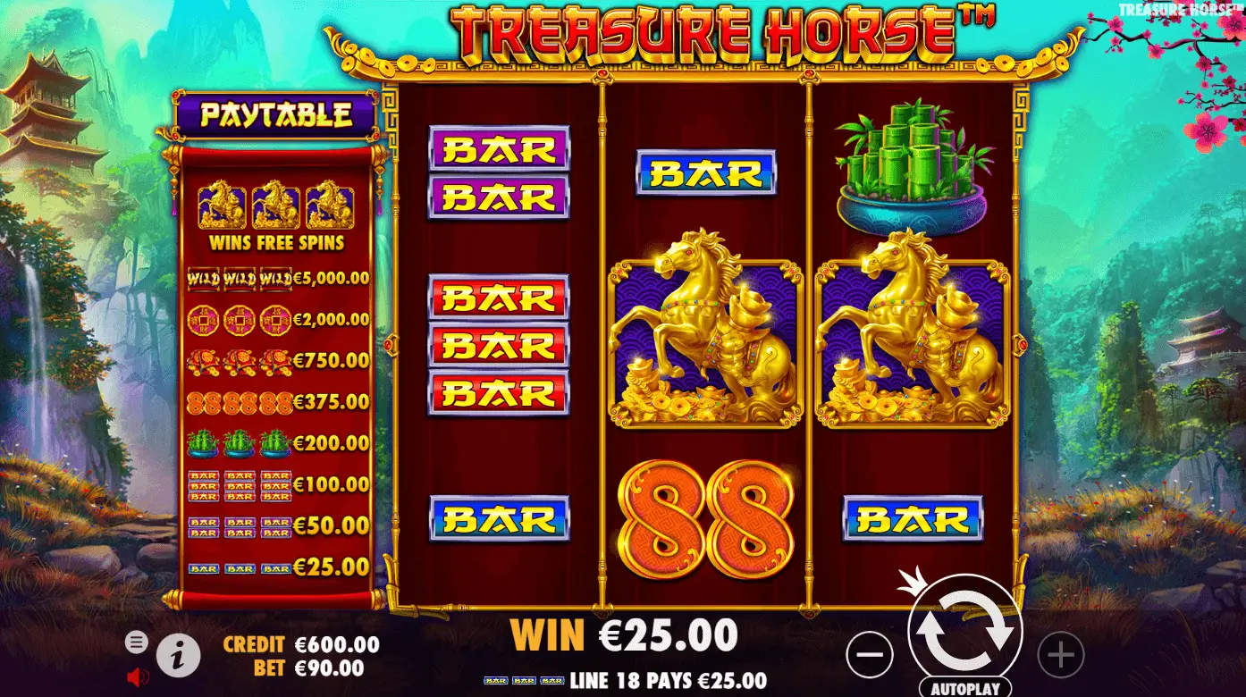 Treasure Horse slot has 3 reels as well as 18 pay-line video online slot, launched in 2019. Clearly, online game could be labeled as new and modern.