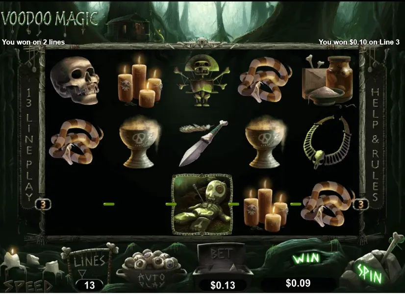 Voodoo Magic slot is a 5 reels and 13 pay lines video slot machine, created in 2014. Clearly, casino game can be marked as old but gold.