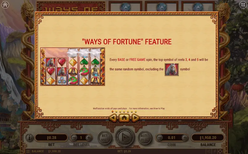 Ways of Fortune slot depends on Ancient topic, however you will be able to meet elements which belongs to Asian, Chinese, Dragon, Fortune themes as well. Definitely, if you enjoy some of previously mentioned online slot machine topics – experience you get from discovering all features of this online slot will be completely impressive.