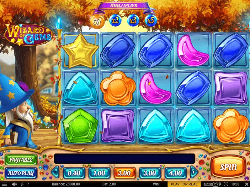 Wizard of Gems slot has 5 reels as well as 20 pay-line video slot machine, made in 2015. Certainly, online game could be marked as new and modern.