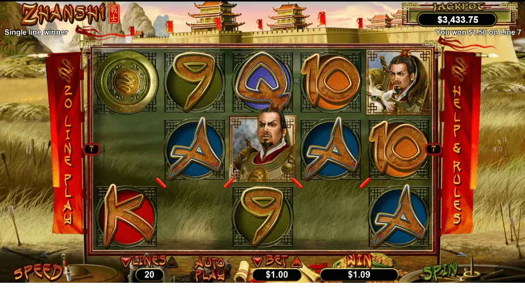 Zhanshi slot is build on Asian topic, although you will easily detect elements which belongs to Ancient, Battle topics as well. Undoubtedly, if you enjoy some of latter online slot topics – experience from discovering all features of this slot will be simply phenomenal.