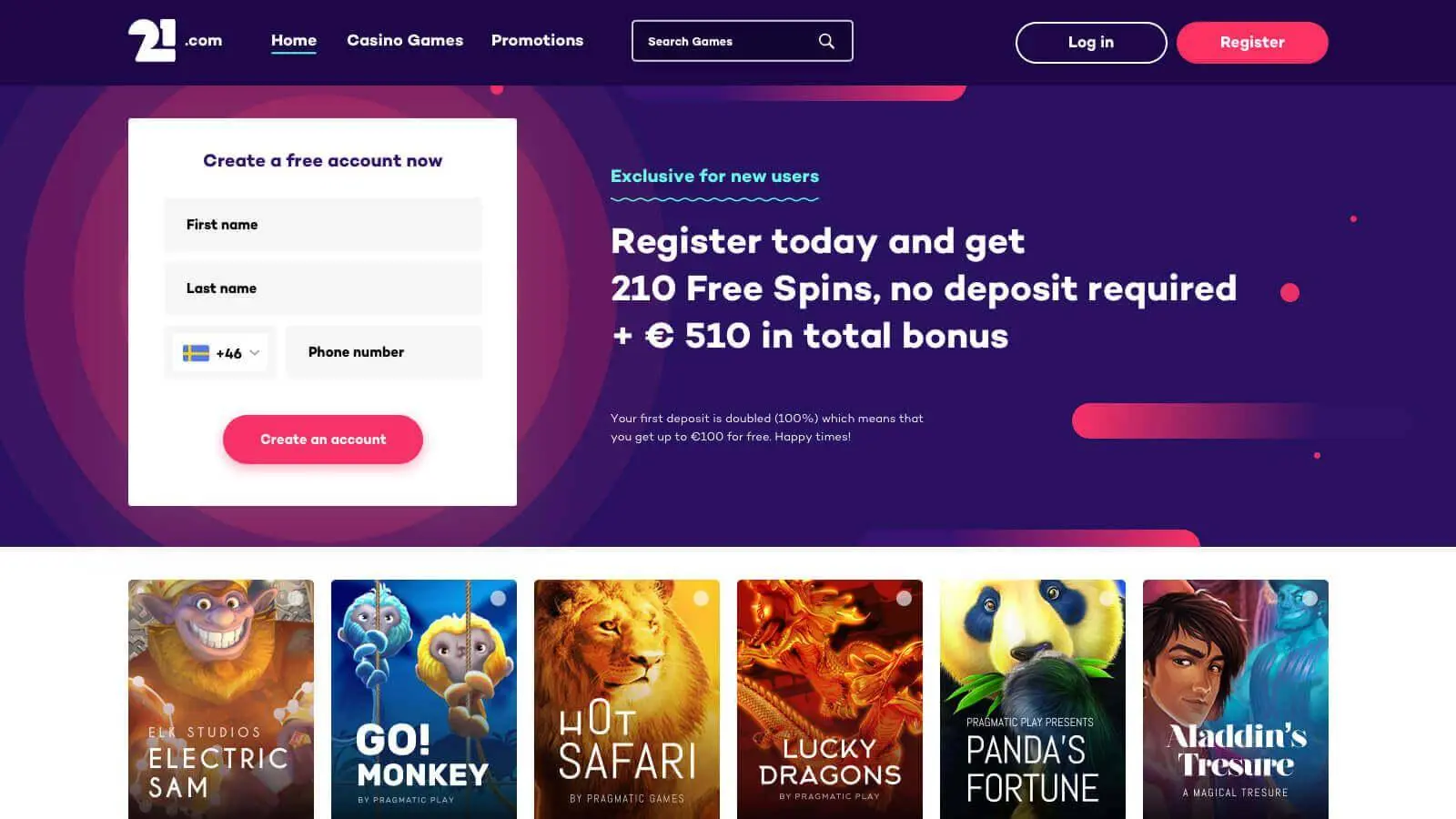 21.com Casino is a recent addition to the online casino scene, having been launched in 2018. It stands out as one of the pioneering new casinos that strives to establish fresh standards in the iGaming industry. One notable highlight is the exclusive bonus package, featuring 210 free spins with no deposit required and a generous $/€210 welcome bonus. Furthermore, the casino boasts a modern and user-friendly design that is both visually appealing and easy to navigate. Lastly, the collection of online slots available at 21.com Casino ranks among the finest offerings found in top-tier online casinos. Begin your gaming journey with the enticing no deposit bonus and indulge in the exciting experience at 21.com!❤️