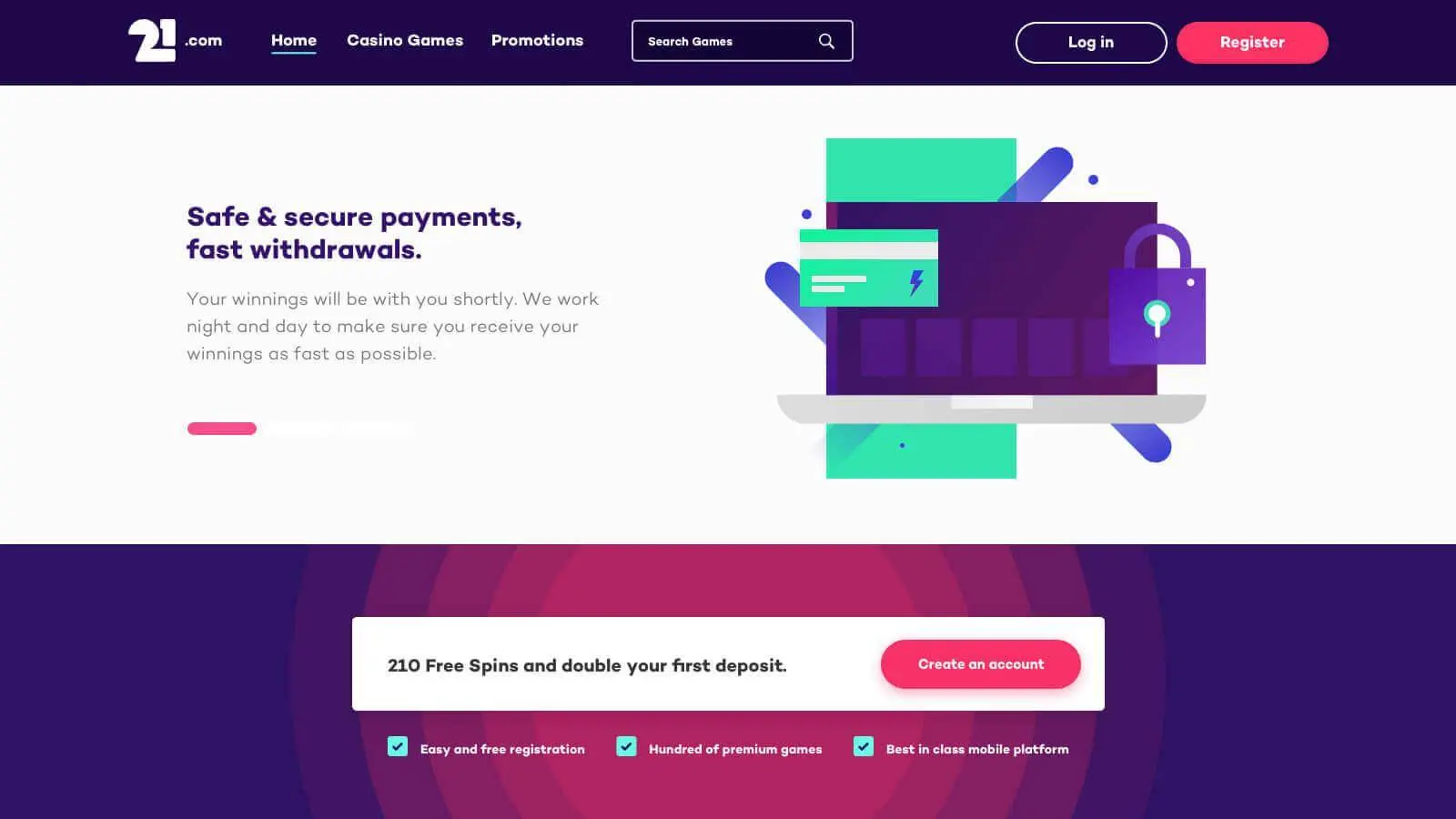 21.com casino prioritizes the security of its players by implementing top-notch SSL encryption and obtaining verification from Comodo. Additionally, the casino undergoes regular audits by independent auditors, ensuring a safe betting environment for gamers.