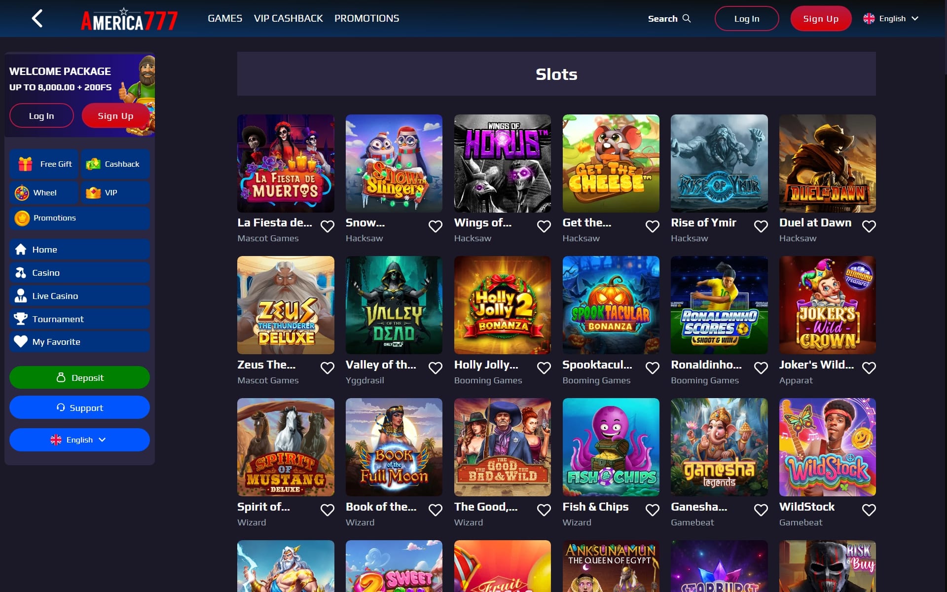 Loading up the America777 lobby, you’re met with a dense game catalogue built around slots, live casino and table games. The platform connects to a long list of studios – including Pragmatic Play, NetEnt, Yggdrasil, Quickspin, Evolution, Play’n GO, Betsoft, Wazdan, BGaming and many others – and organises everything into simple tabs for slots, tables, live dealer and other categories rather than overcomplicated filters.