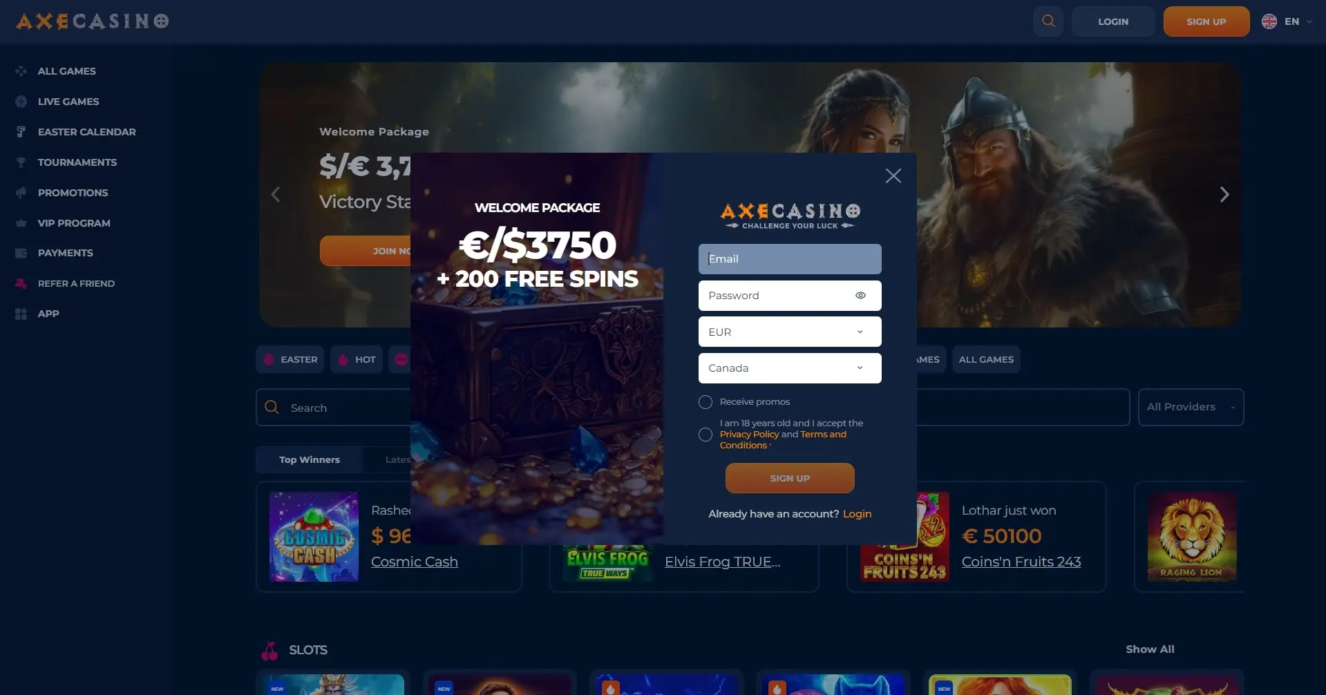 Ready to experience Axe Casino? Sign up now to explore over 5,000 top-tier games, seize incredible welcome offers, and enjoy the perks of a robust VIP program. Your next thrilling win could be just a spin away—don’t miss out!