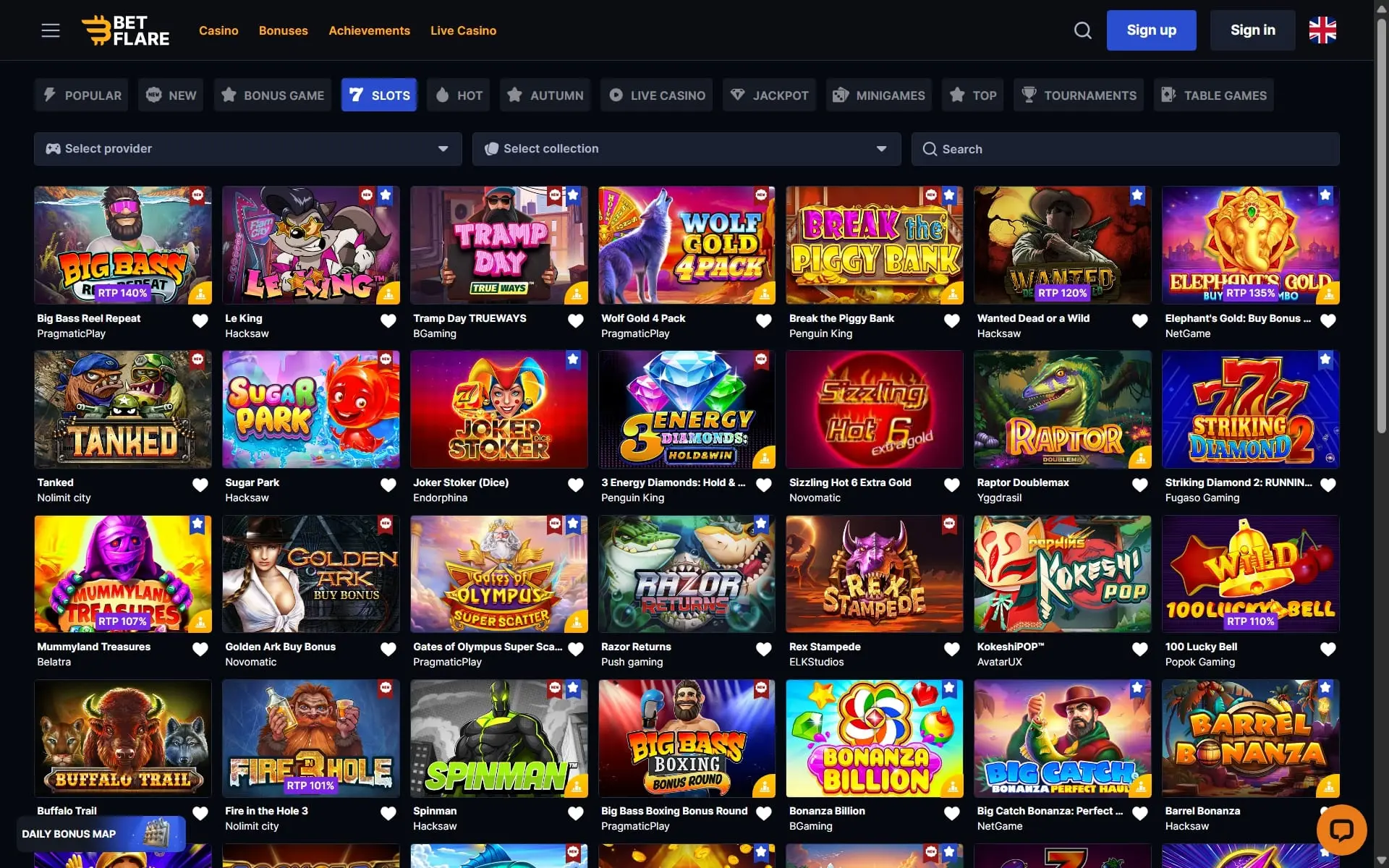 Betflare’s lobby is split across familiar pillars—Slots, Jackpots, Live Casino, Table Games, Crash/Instant, Megaways, Bonus Buy, and Tournaments. The operator and external reviewers both frame the offering as thousands of titles, with slots alone comfortably in the mid-four digits.