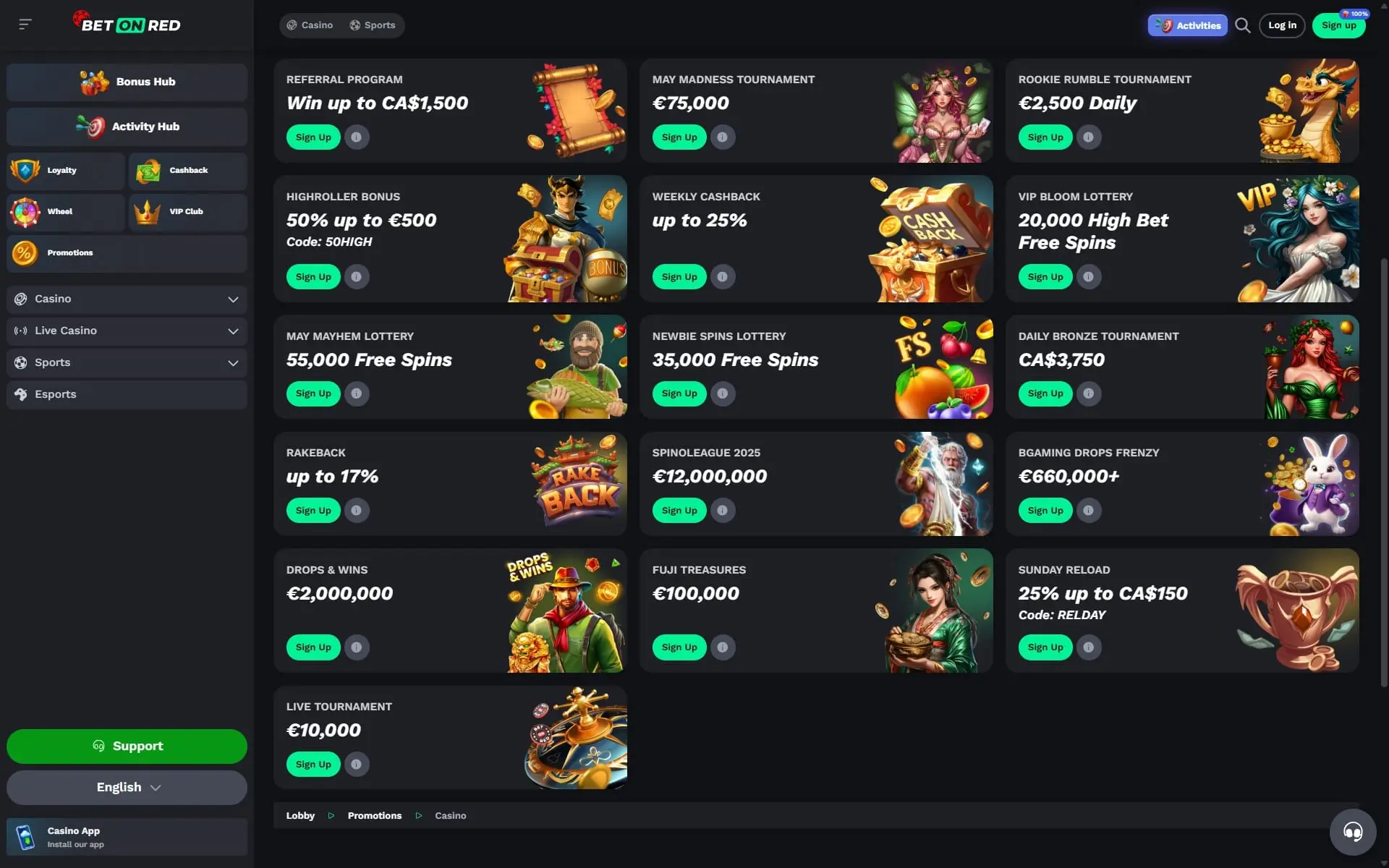 Outside of the Loyalty Program, existing players can find reload bonuses. BetOnRed Casino offers a Sunday Reload promotion, where players can get a 25% deposit match bonus of up to $150.