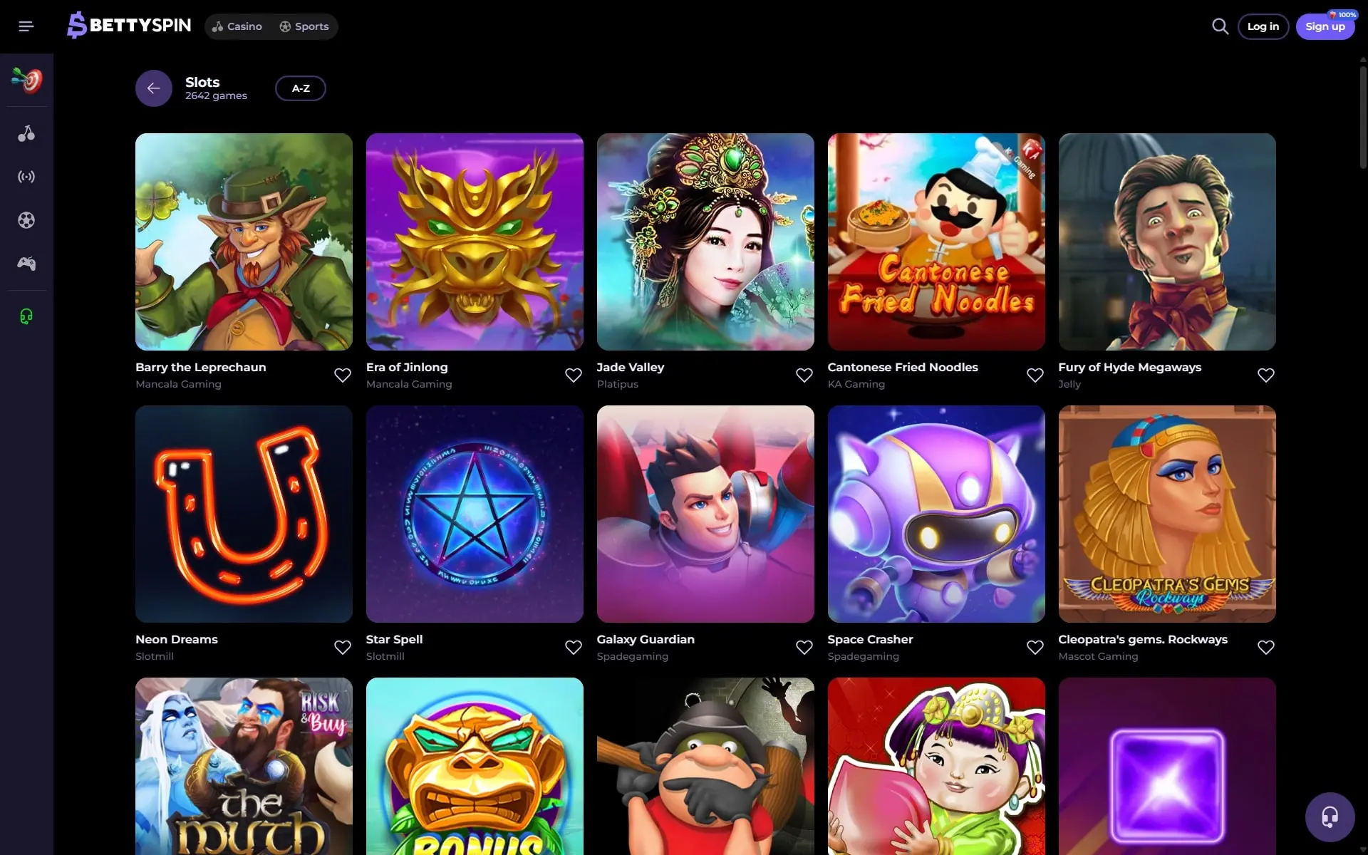 Bettyspin organizes its lobby into intuitive rails and categories that work the same way on desktop and mobile. The platform is browser-based and instant-play, with a 6,000+ total game catalog.