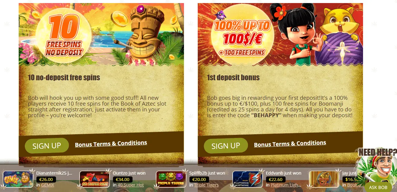 Talking about bonuses, the guys from Bob Casino and other brands regularly send us new no deposit bonuses. However, these offers are normally time limited so we only share them via email.