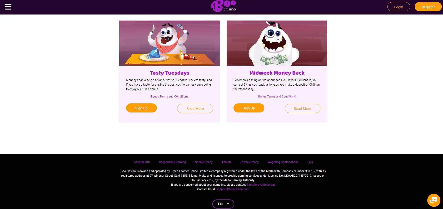 Talking about bonuses, the guys from Boo Casino and other brands regularly send us new no deposit bonuses. However, these offers are normally time limited so we only share them via email.