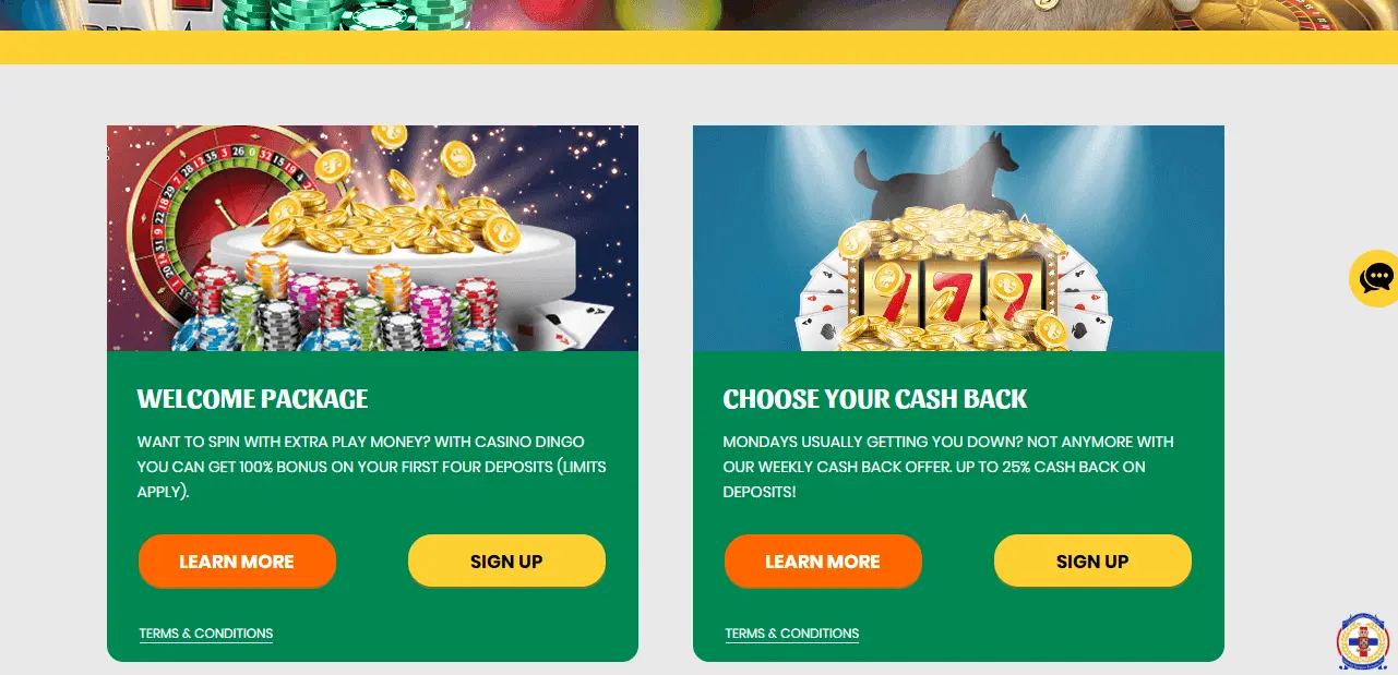 If you want more special promotions and various kinds of special/personal offers, then join to the Casino Dingo VIP club. Play games and climb the ladder. The higher you climb, the better your bonuses will become. We wish you luck!