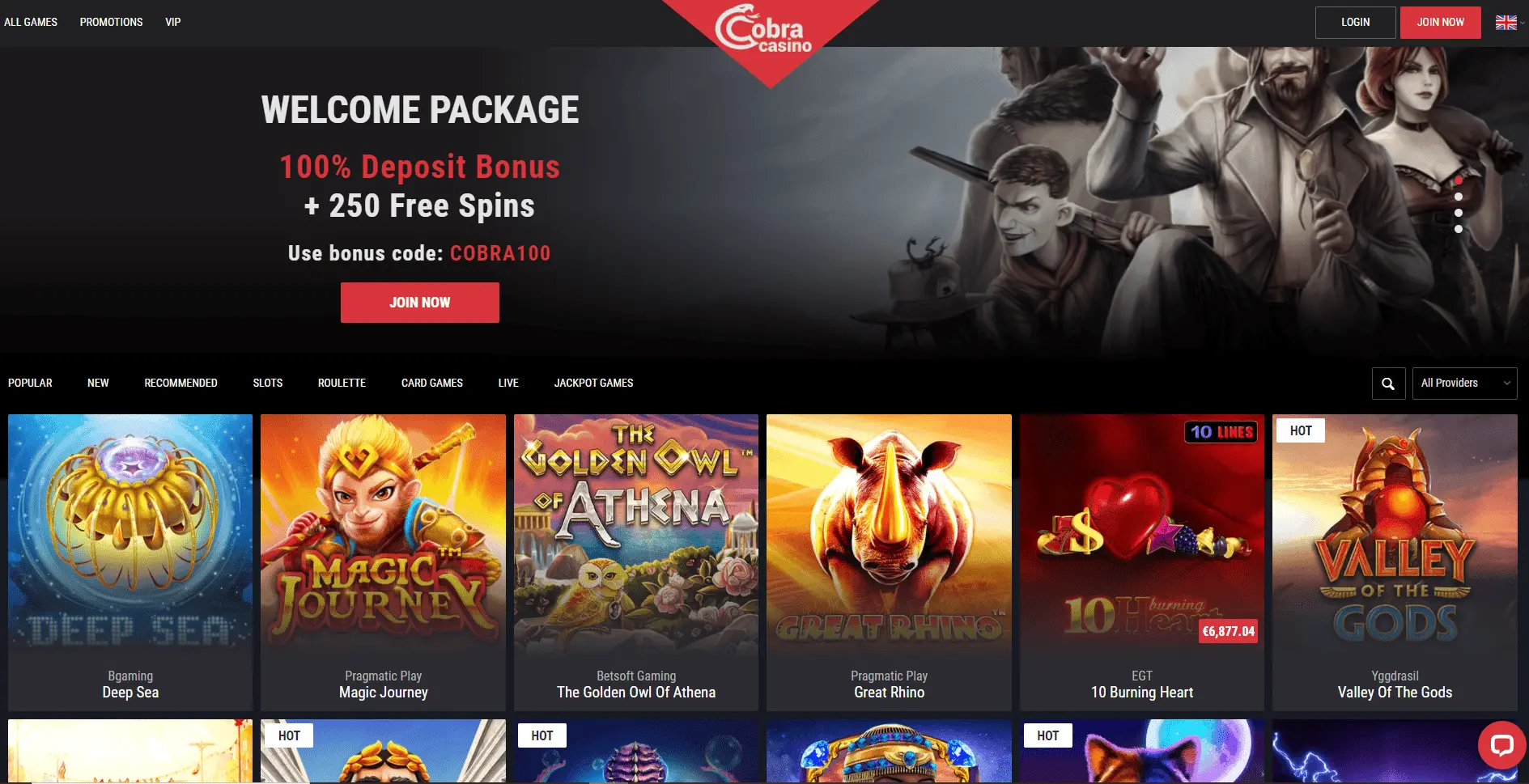 Cobra Casino provides a standard welcome bonus for new players, along with a modern casino site that boasts excellent mobile responsiveness. The casino also offers a vast selection of high-quality games from top providers, as well as a cool VIP program. Take advantage of the bonus and enjoy all that Cobra Casino has to offer!