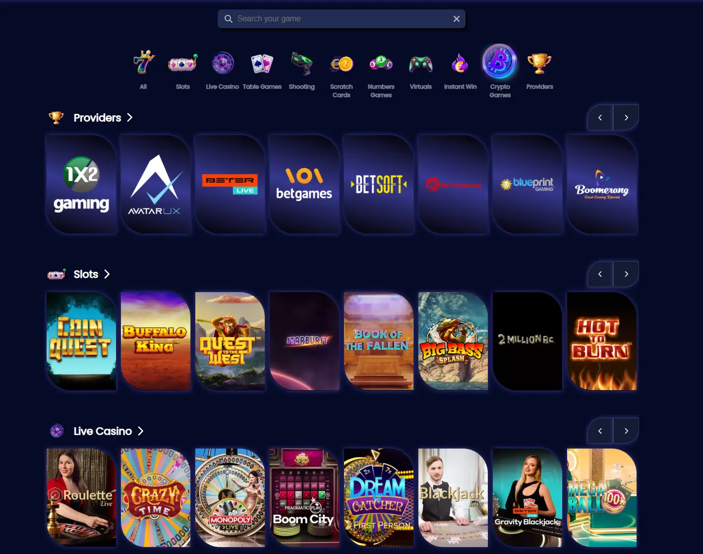 - The casino boasts games from top providers like 1×2 Gaming, Big Time Gaming, NetEnt, Play N Go, and many more. Whether you’re into slots, blackjack, roulette, or live casino games, there’s something for everyone.
