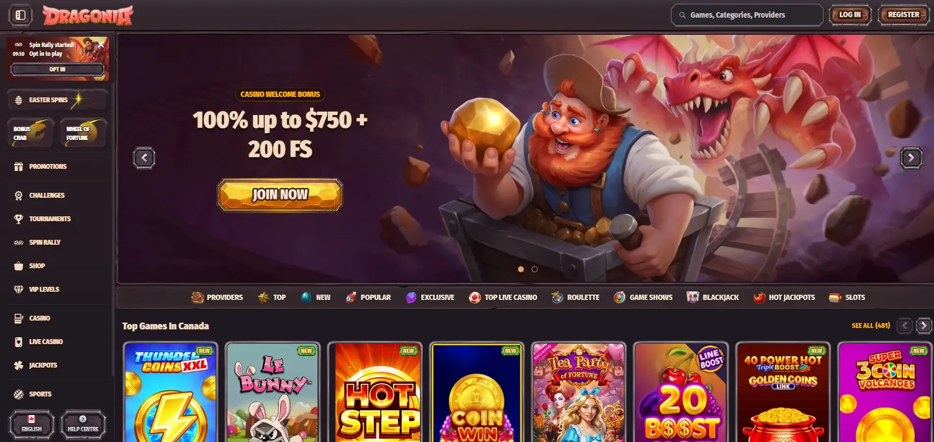 Dragonia Casino features a wide selection of over 9,000 games across multiple categories. The platform is easy to navigate, with filters and search tools that help players quickly find their preferred titles.