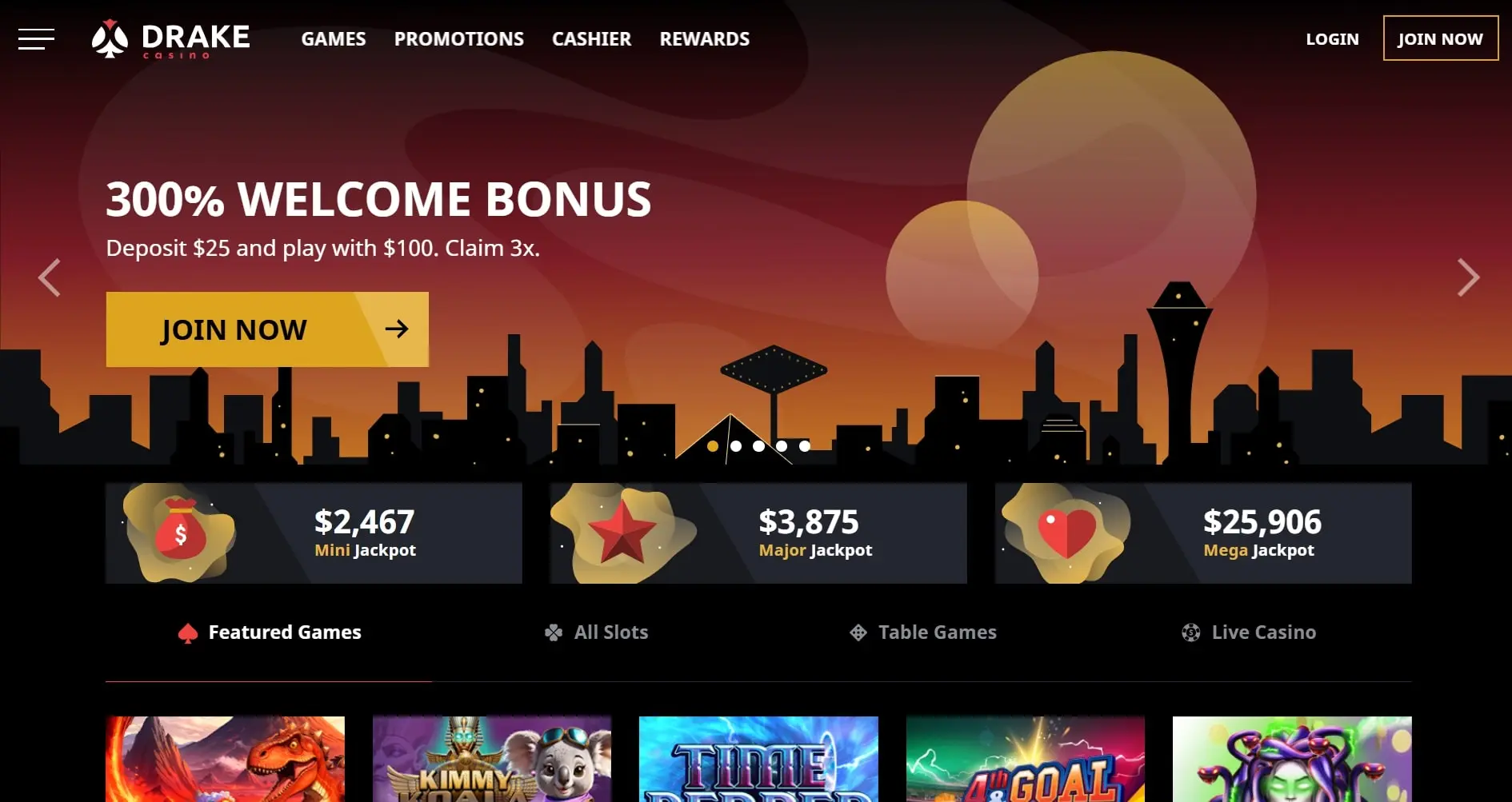 Feeling lucky? Sign up at Drake Casino today to triple your deposit not once, not twice, but three times—and dive into a sea of eye-popping 3D slots, classic table games, and live dealer thrills. Why wait to chase those jackpots when they’re just a few clicks away?