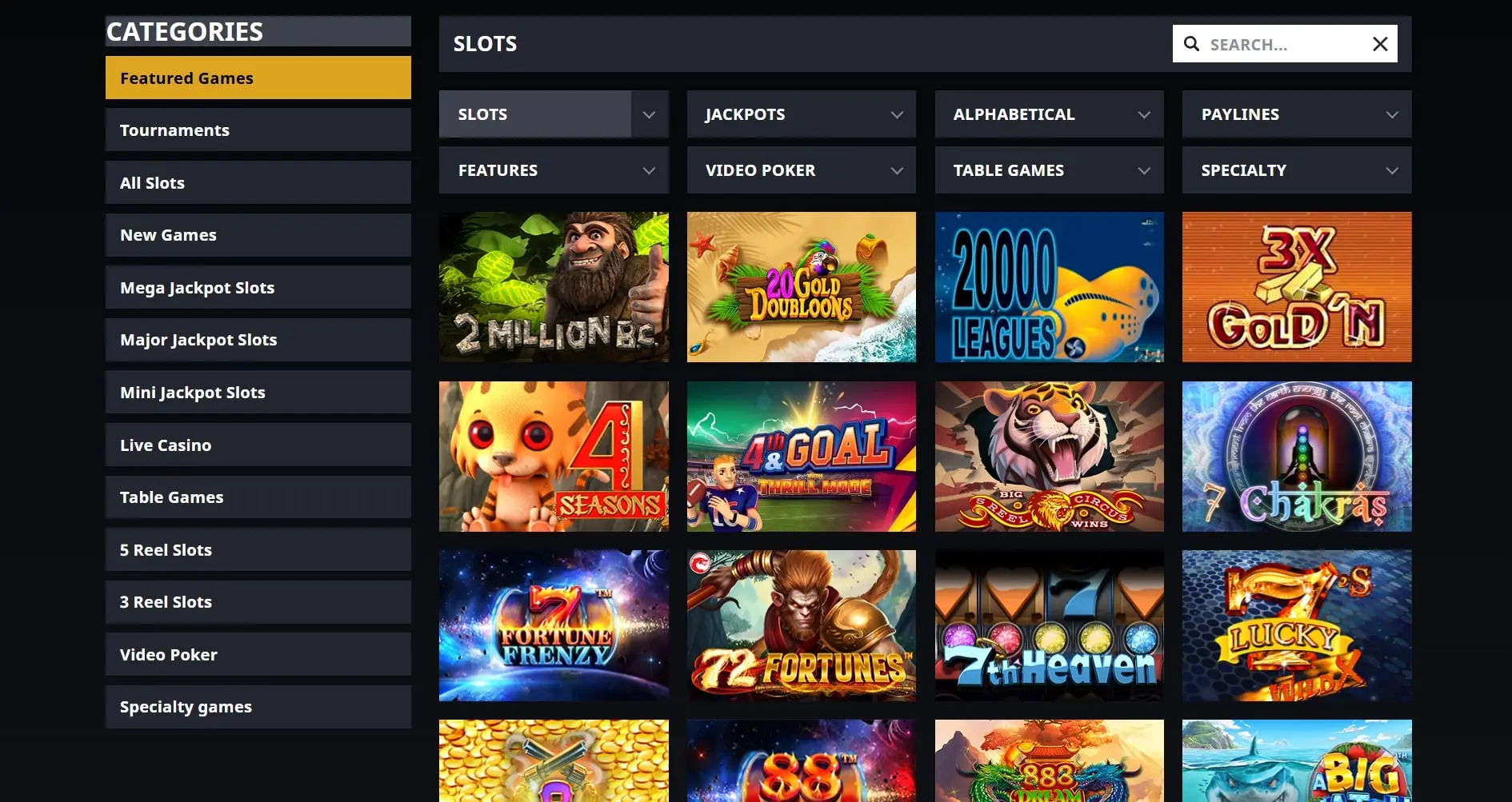 - Slots: Betsoft’s 3D catalog dominates the roster, with favorites like Slots Angels and At the Copa. Arrow’s Edge contributes some lesser-known yet high-paying gems.