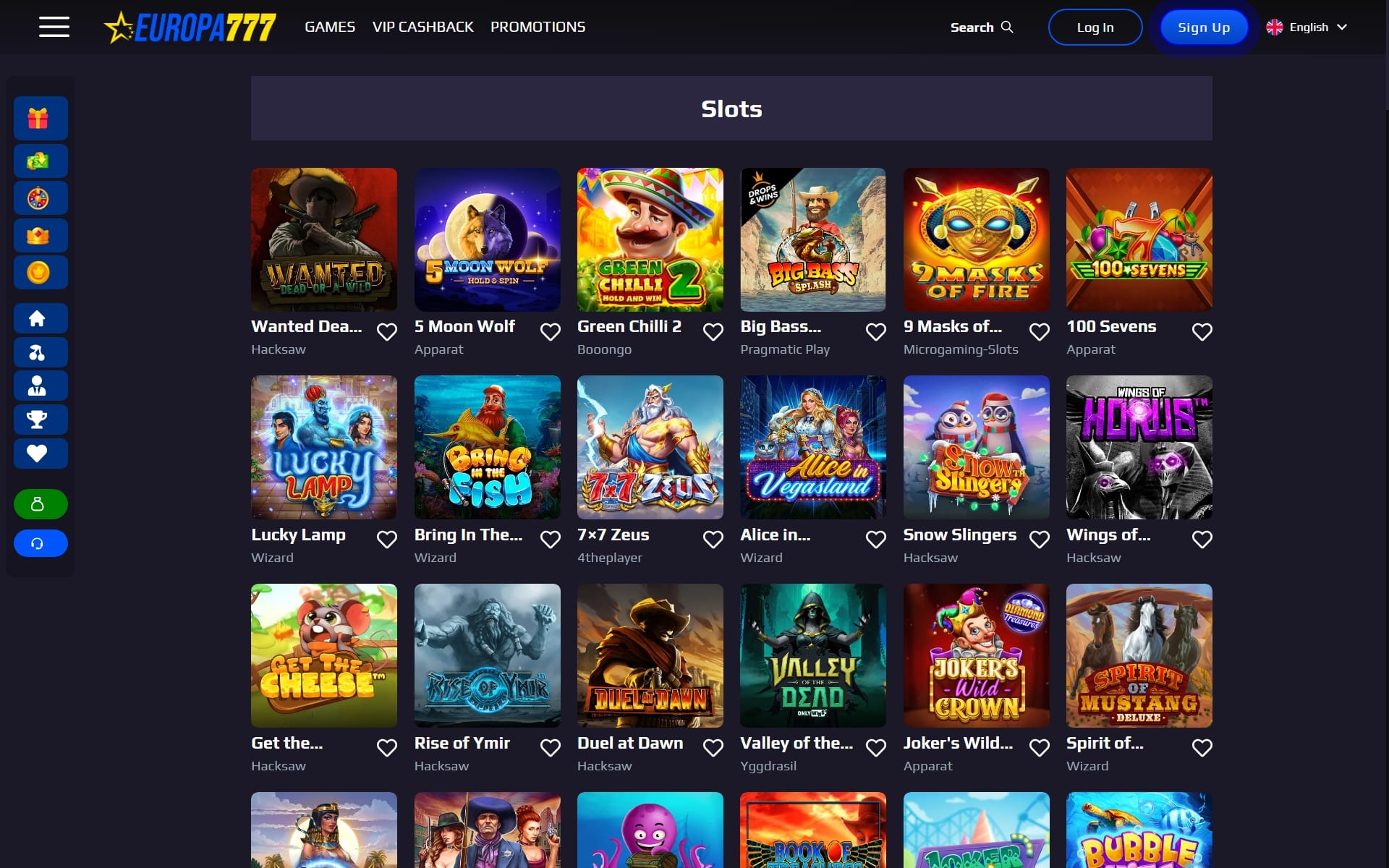 Opening the Europa777 lobby, you’re dropped into a very full game hub. The casino combines content from dozens of providers – including Pragmatic Play, Yggdrasil, NetEnt, Quickspin, Evolution and many others – and splits it into familiar tabs for slots, live casino, table games, video poker, crash games and a handful of specialty titles.