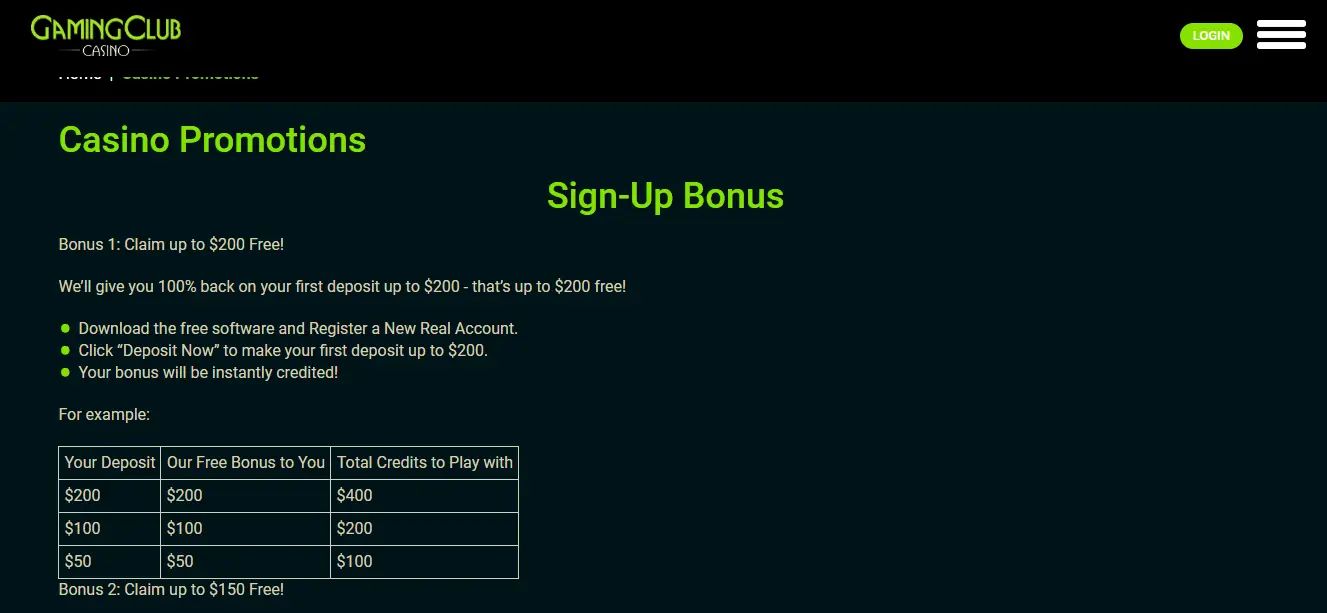 That last level is invite-only for VIP players. Think of it as a VIP program. It gets you access to exclusive promotions. You get the Gaming Club Casino premium online gambling experience.