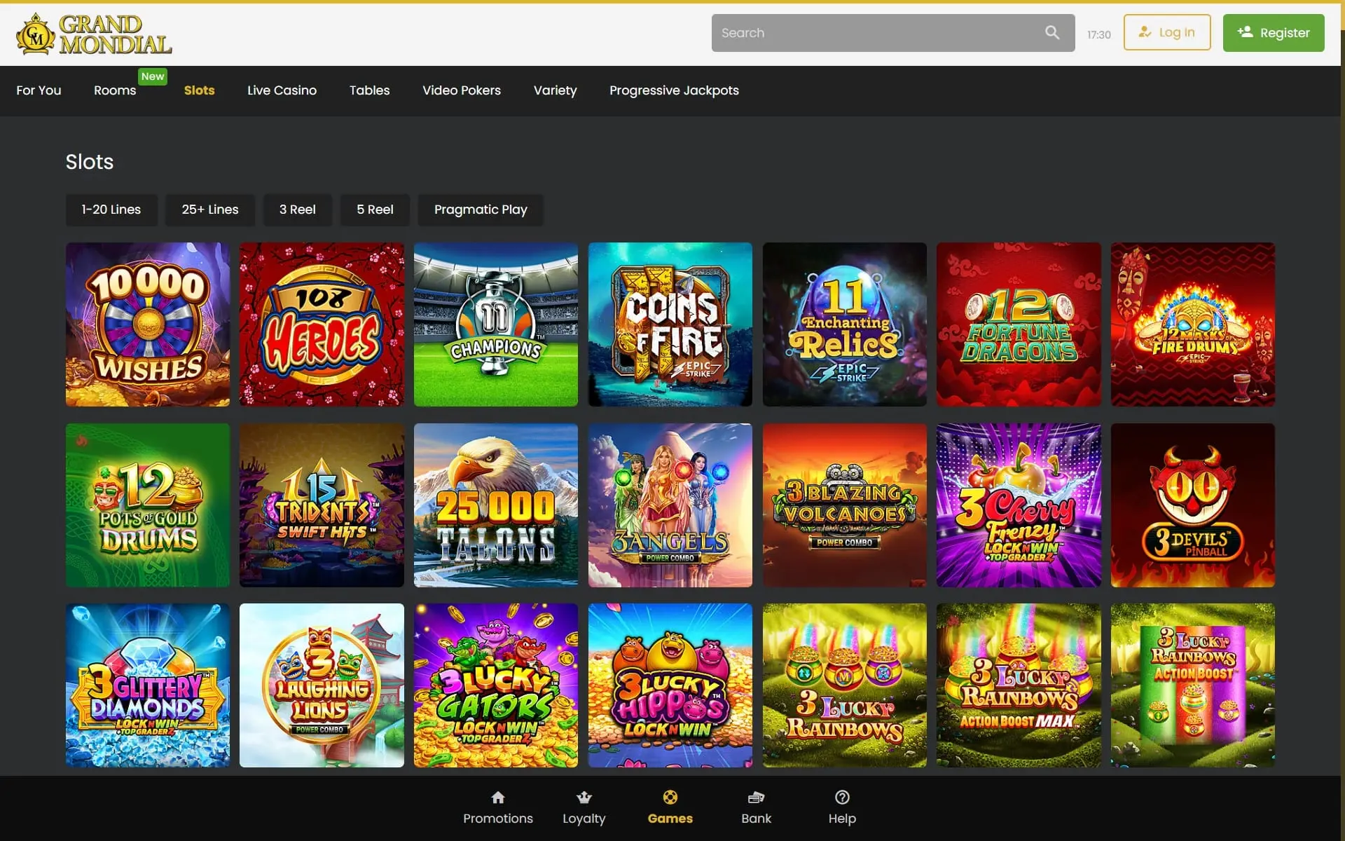 Unlike most online casinos, Grand Mondial Casino doesn’t feature all top-tier software providers. However, you’ll find games from providers like Games Global (formally Microgaming) and Pragmatic Play. The graphics are sharp, and the functionality is smooth.