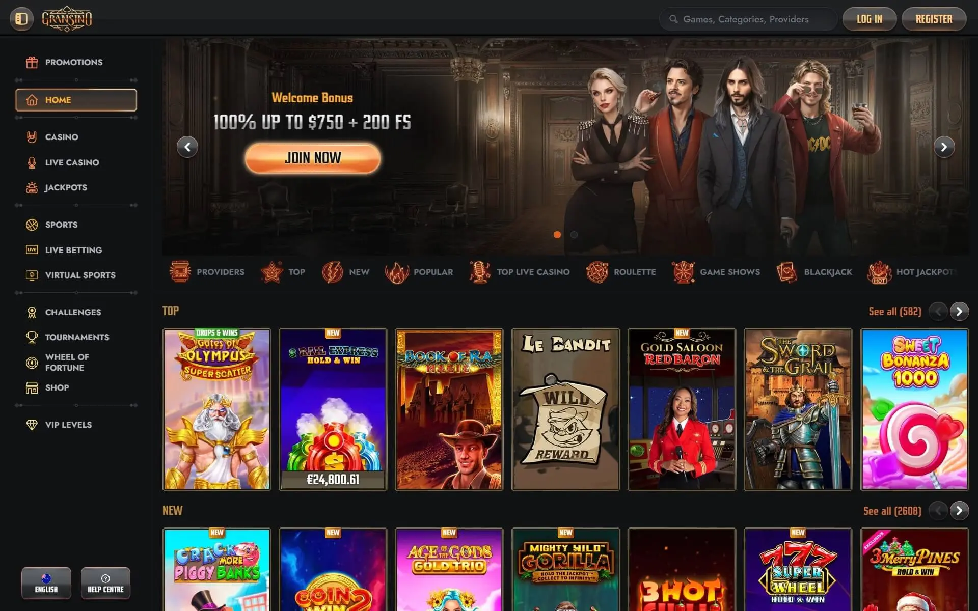 Gransino Casino has Curacao license and welcomes new players with 15 Free spins No deposit bonus. This casino got 3/5 points in our rating system. Claim bonus and start winning. Winning withdrawal usually takes 24-48 hours. If any issues, they have Email, Phone support.