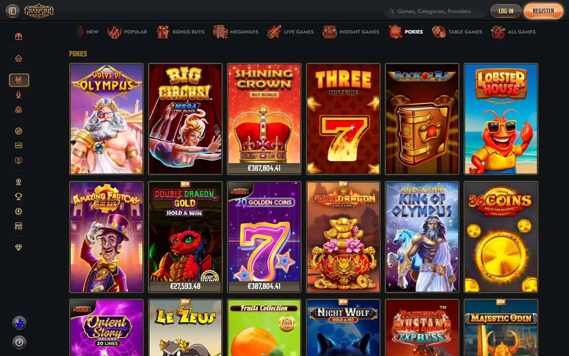 - Software provider: Microgaming, Net Entertainment, Evolution Gaming, BetSoft, Play'n GO, Pragmatic Play, Big Time Gaming, Quickspin, ELK Studios, Yggdrasil, Red Tiger Gaming, lightningboxgames, Rabcat, 1x2gaming, Just For The Win, Wazdan, Foxium, NoLimitCity, 2by2 Gaming, Endorphina, Tom Horn Gaming, Habanero Systems, Ezugi, GameArt, Playtech, Push Gaming, Fantasma Games, All41 Studios, Pariplay, Gameburger Studios, Stormcraft Studios, Slingshot Studios, Merkur Gaming, Fortune Factory Studios, Relax Gaming, Spinomenal, Amatic Industries, Crazy Tooth Studio, Gamomat, Booongo, SpinPlay Games, Red Rake Gaming, Skillzzgaming, Pulse 8 Studios, Neon Valley Studios, Golden Rock Studios, BGAMING, Old Skool Studios, Switch Studios, Northern Lights Gaming, Pocket Games Soft, Cayetano, BF Games, Skywind, Max Win Gaming, Rarestone Gaming, Snowborn Games, AvatarUX, Lost World Games,