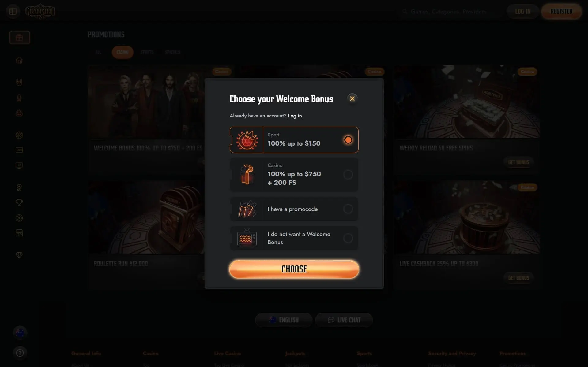 - Gransino Casino bonus as soon as we get it