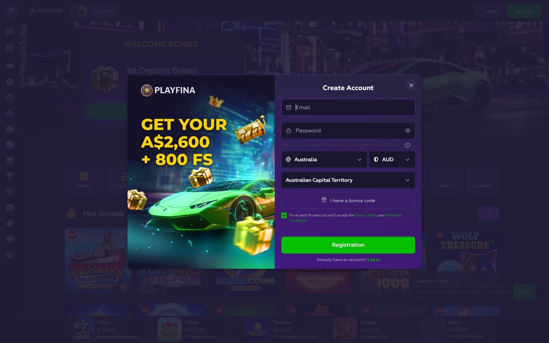 No-deposit bonuses are not part of Playfina’s standard offer; the focus is on deposit-based promotions.