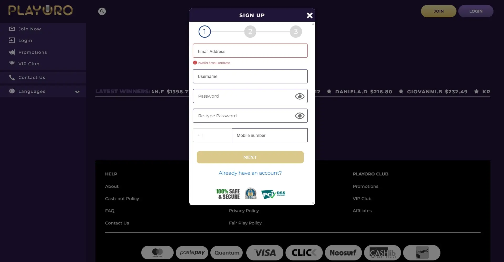 The support team is fluent in multiple languages, including English, French, Spanish, Italian, German, Portuguese, Finnish, and Arabic. For quick fixes, Playoro also maintains a thorough FAQ section covering account registration, deposits, withdrawals, bonus usage, and more.