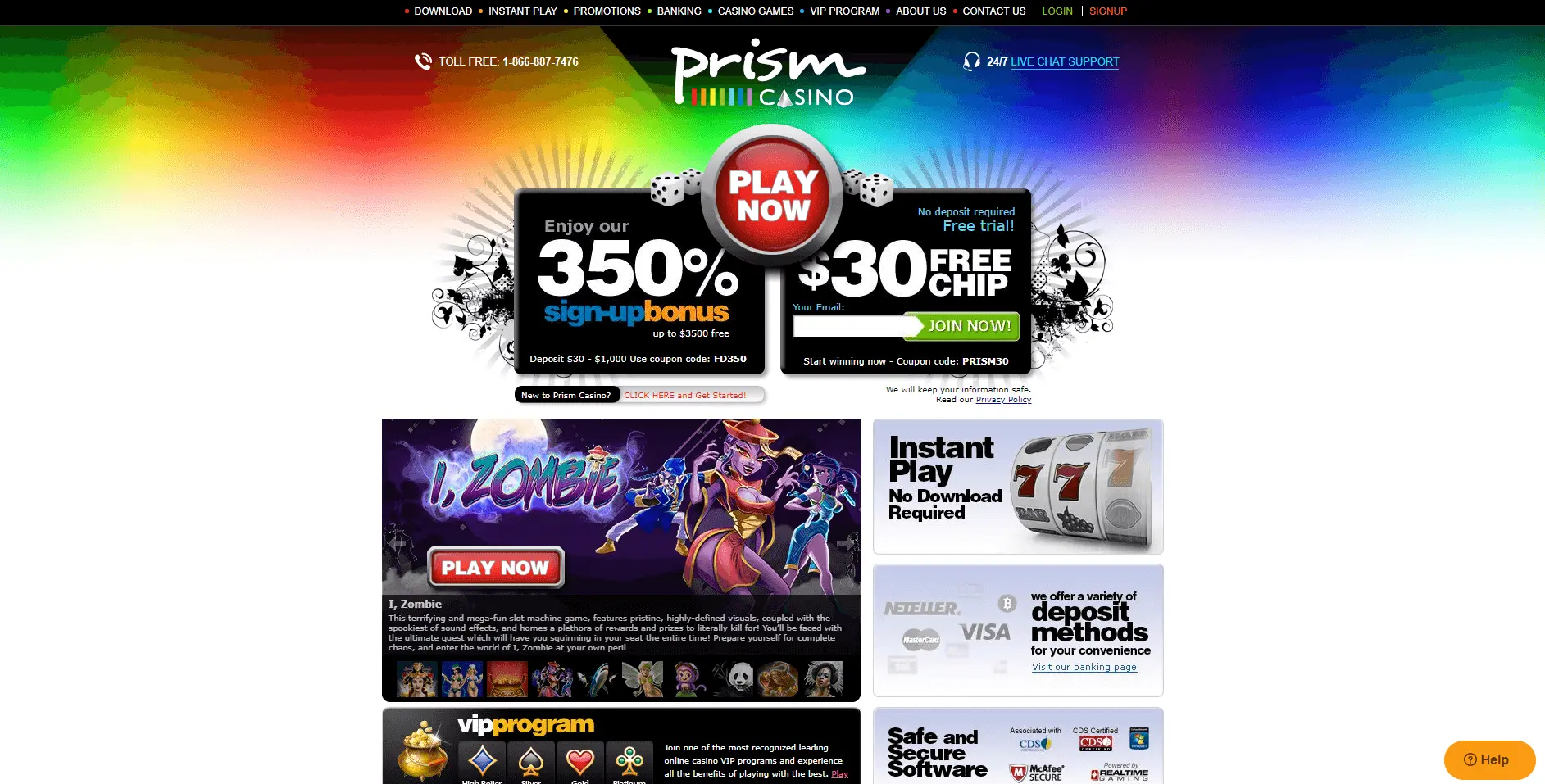Look at online casino site through a different prism! Solid design, variety of cool bonuses, top slot games from RTG provider, casino download version and much more waiting for you at Prism Casino. Grab No deposit bonus code and play for free.