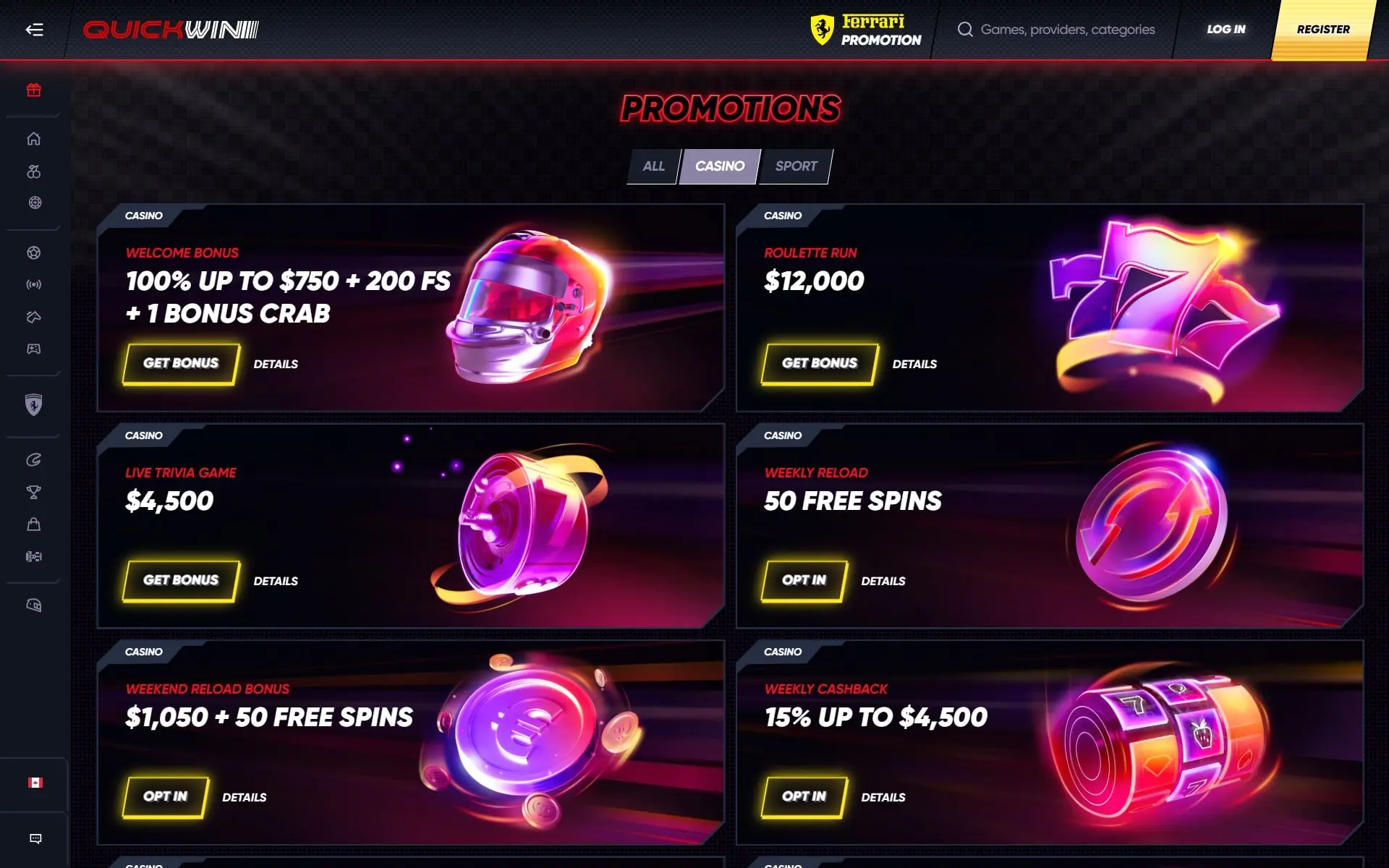 Before discussing what the operator offers, here’s a short QuickWin Casino overview. As a relatively new online casino, QuickWin provides a platform that caters to various types of players. In addition to offering online casino games, QuickWin also has a sports betting section.