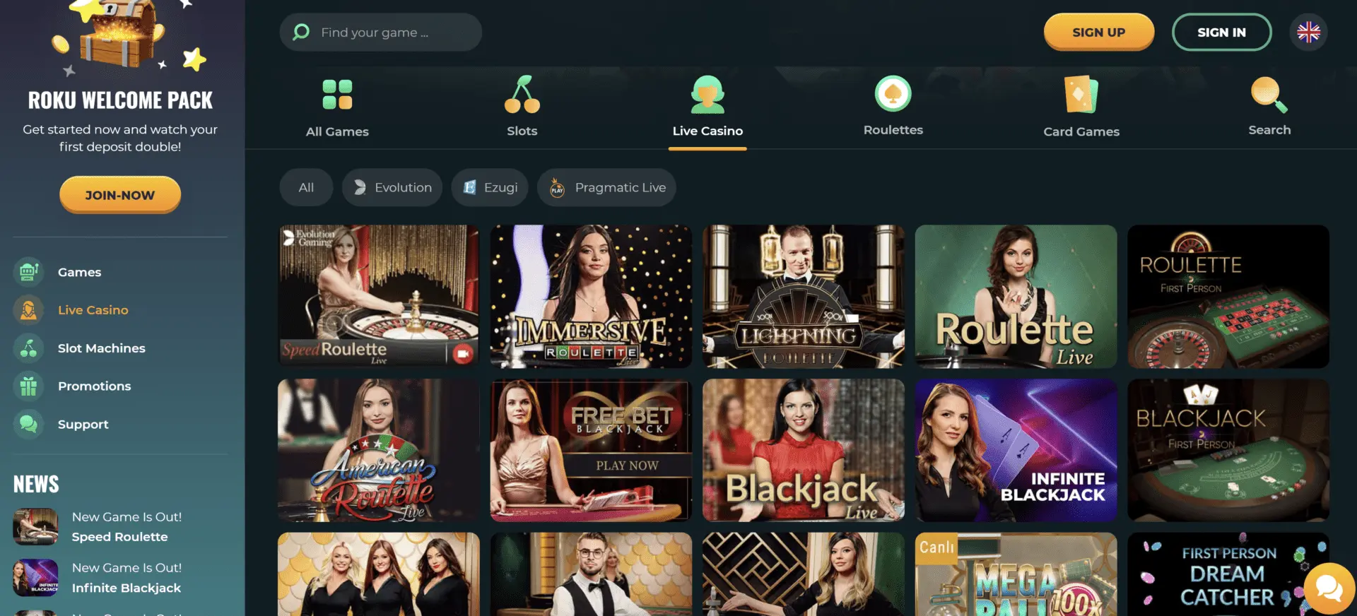 The live casinos at Roko Casino will transport you to a world of excitement, with games like Blackjack Live, Infinite Blackjack, Blackjack Silver, and other thrilling games. For those who enjoy slot machine games, there are plenty of options, including Jackpot Express, Pamper Me, Four Horsemen, Magic Stone, and more.