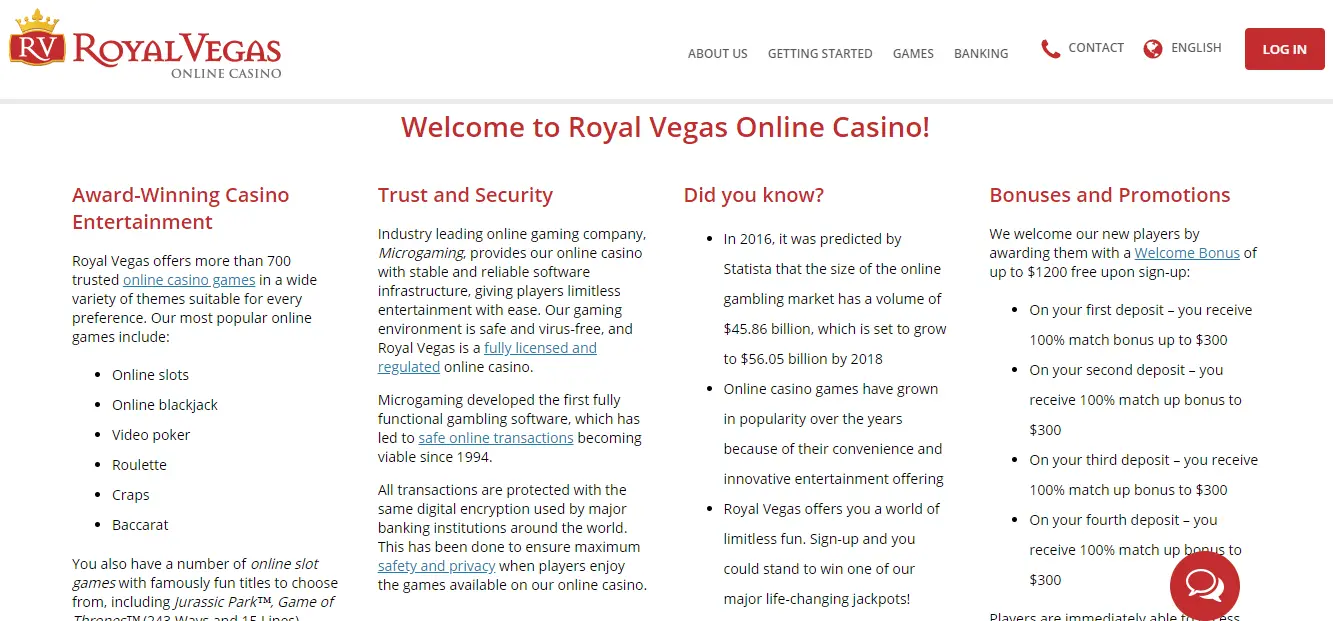 This Royal Vegas Casino overview will give you a glimpse of this platform. We cover general information and elaborate on its specific offers. From games available, device compatibility, site navigation, and transactions. By the end, you’ll determine if this casino is the right site for you.