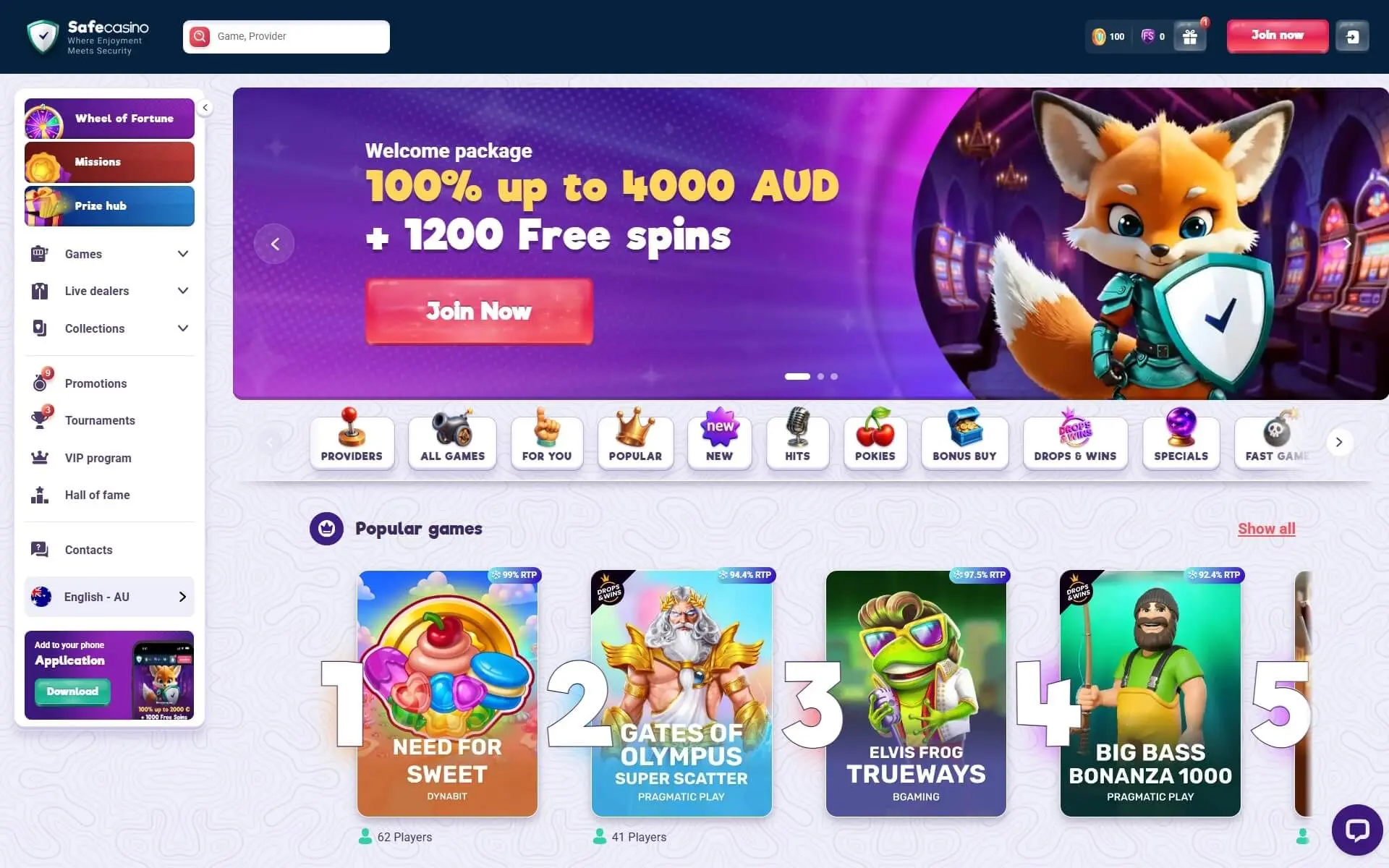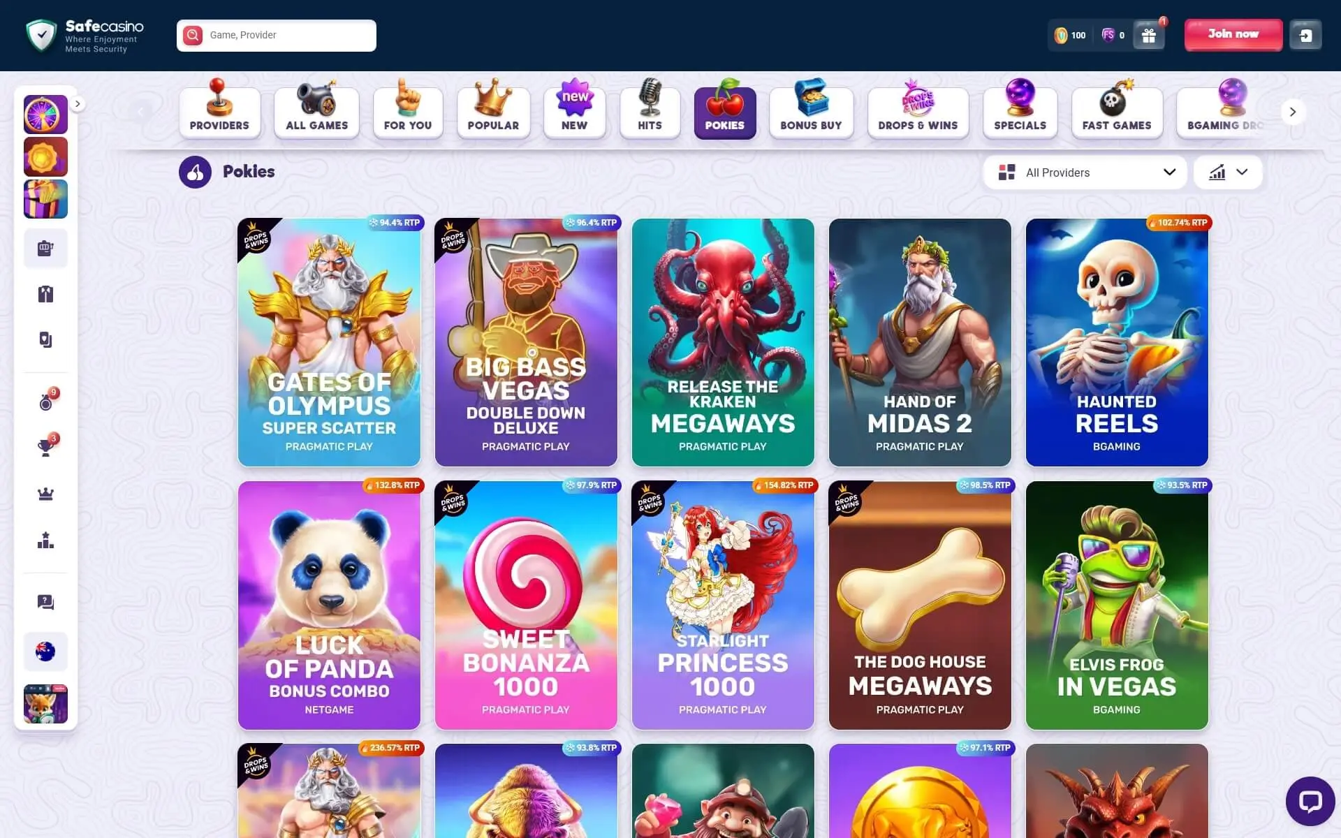 Slots. Safecasino is primarily a slots site. Most of the library is made of video slots, high-volatility titles and branded games from top suppliers such as Pragmatic Play, Play’n GO, NetEnt, Nolimit City, BGaming, Yggdrasil, Red Tiger and Hacksaw Gaming.