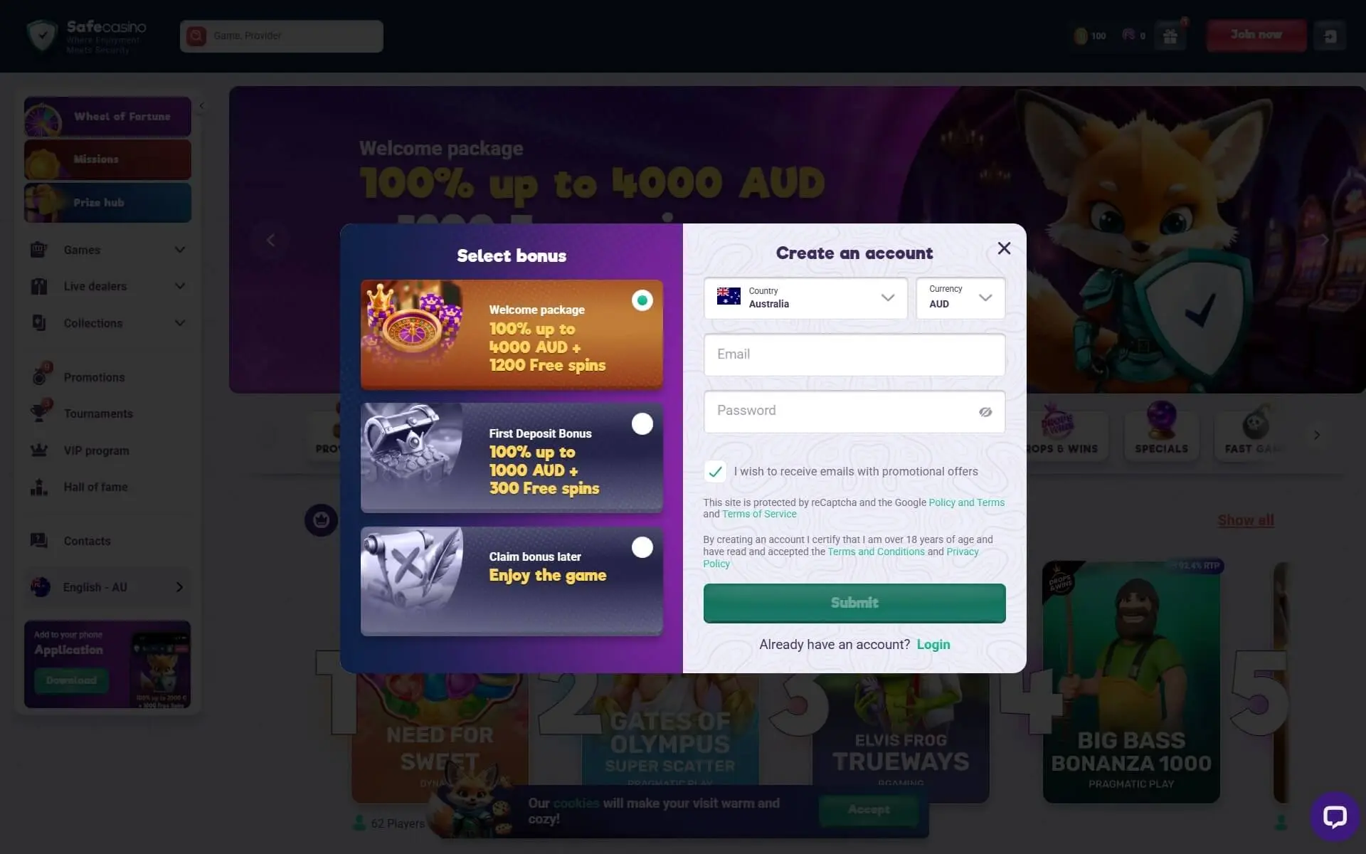 Safecasino is an online casino with thousands of slots, fast games and live tables. New players can unlock a four-part welcome package worth up to $4,000 and 1,200 free spins, plus VIP rewards and flexible banking via cards, e-wallets and crypto.
