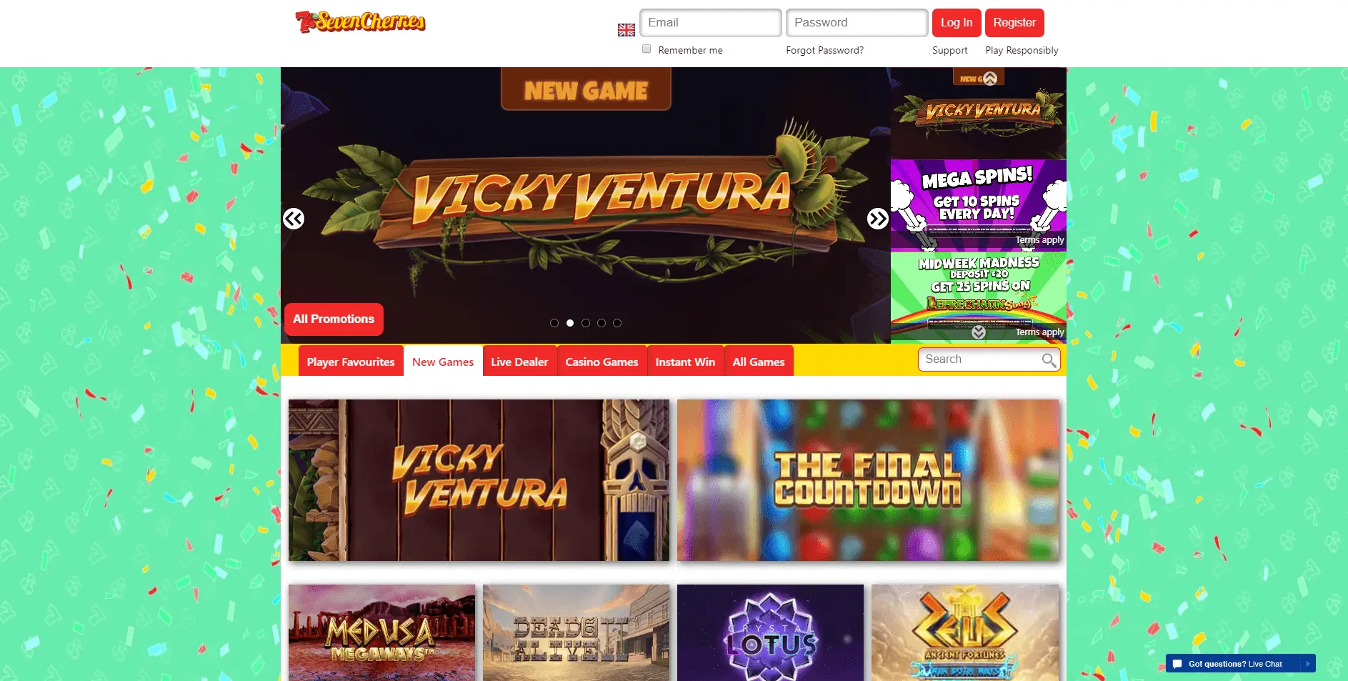 Seven Cherries Casino is a safe online casino site which holds UK licence. Moreover, it became popular among players due to various bonus promotions which include nice welcome bonus, VIP program, midweek bonuses, weekend promotions, daily boosts and more. Grab Free spins promo code and use it on best slot game!