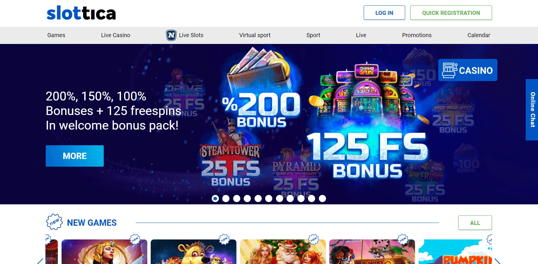 Slottica Casino - great casino site with focus on beloved online slot games where fans of this casino category will find any type of slot machine. Looking not only for slots? Not a problem! Live casino, sports, virtual sports and other categories are available too. Grab the bonus and enjoy.