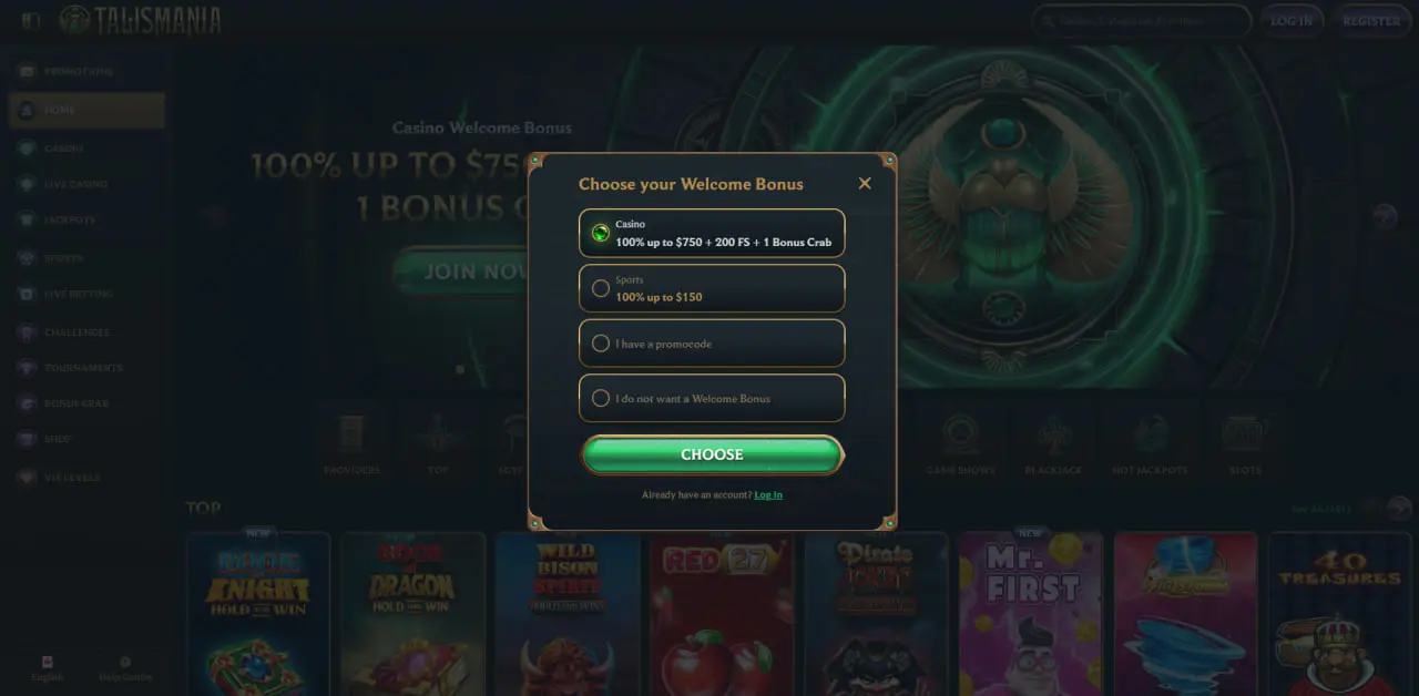 Talismania Casino bonus 🎁