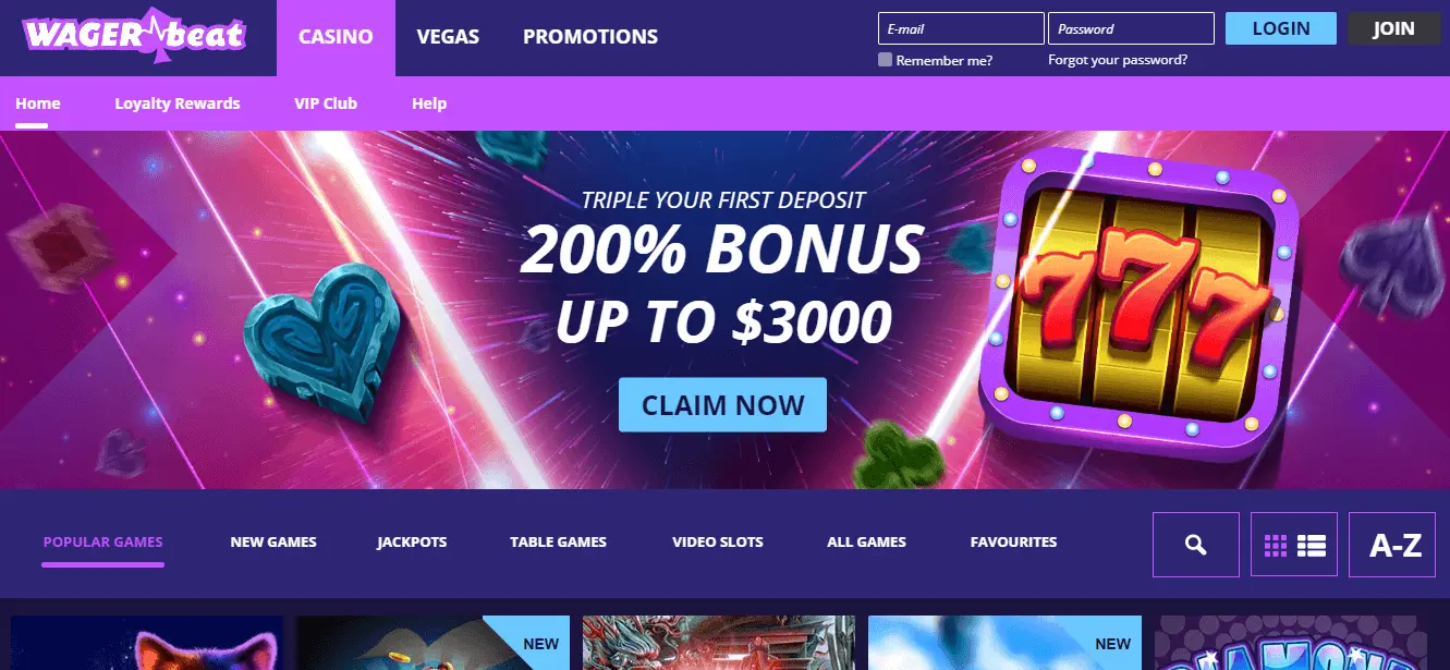 Wager Beat Casino - another new casino established in 2018. It is sister casino with ROO Casino and All Spins Win Casino so many similarities will be faced for the ones who enjoyed ROO and All Spins Win casinos. Common characteristics are: huge welcome bonus, fast withdrawal process with some payment methods, famous slots, VIP and Loyalty programs.
