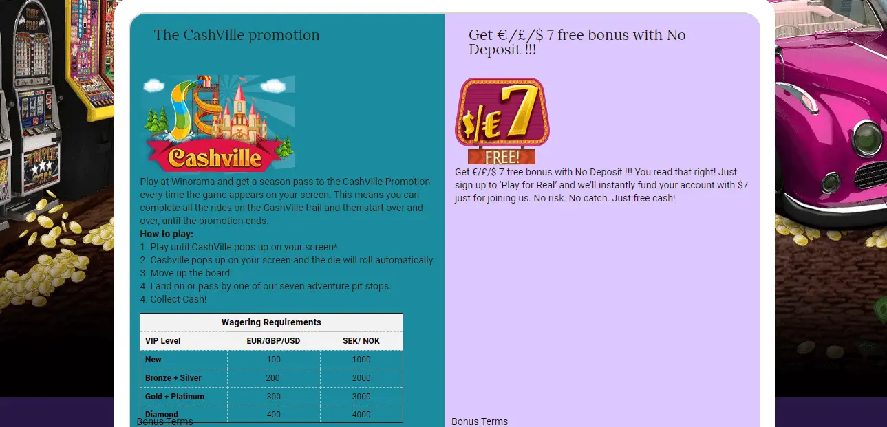 Winorama Casino offers a generous 70 free spins no deposit bonus upon registration, allowing you to explore this colorful online casino site and try out their excellent selection of instant win, slot, and scratch card games for free. With unique gaming experiences guaranteed, why not give Winorama Casino a try today?💖