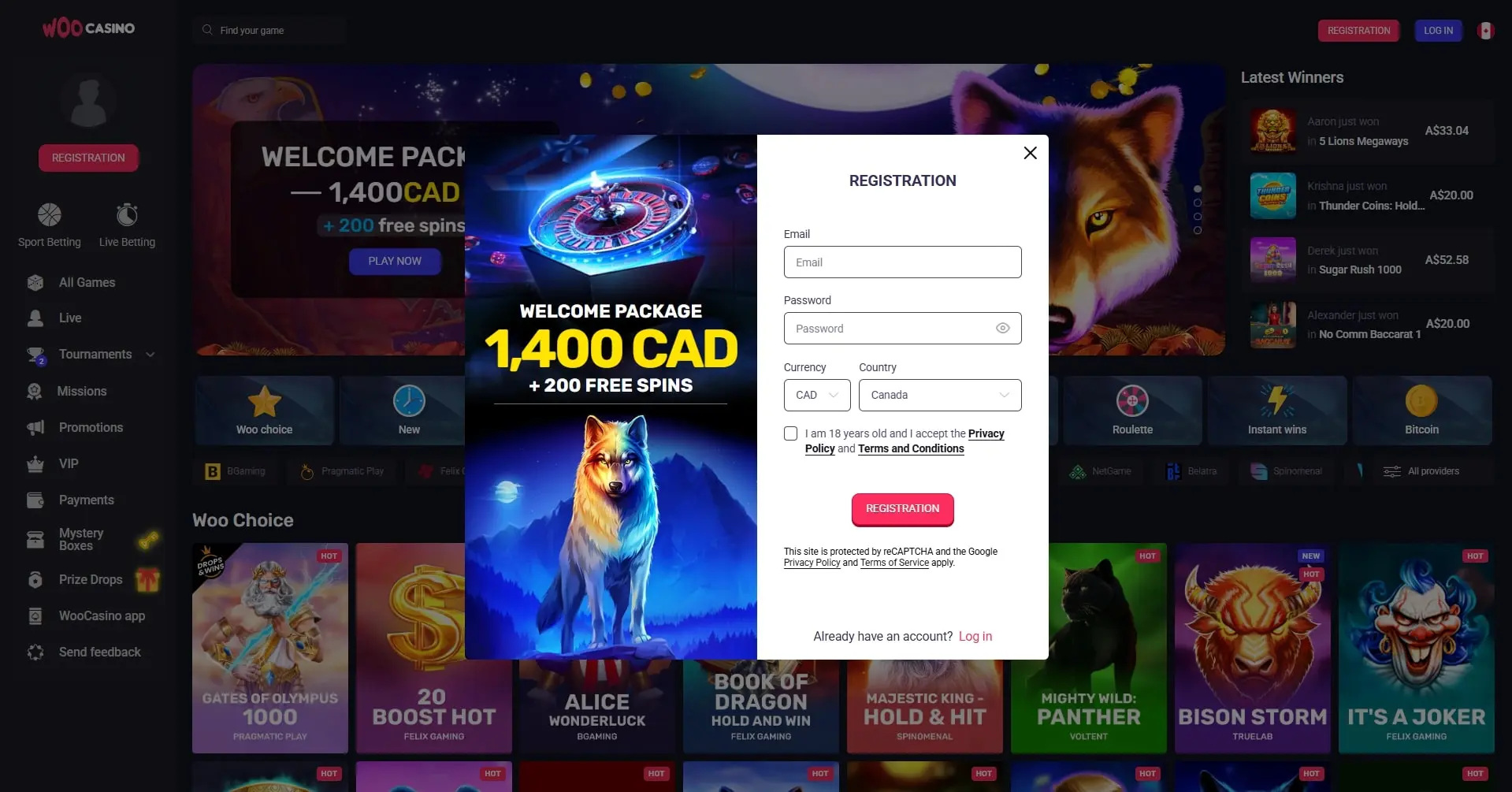 Dama N.V. runs a bunch of these places, and Woo Casino’s basically their standard template. Tons of games, takes crypto, bonuses are decent. The online gambling setup here works fine for Canadians – you can stick with CAD the whole way through without dealing with conversion garbage. Interac’s available too, which honestly matters more than people think since that’s what most of us actually use up here.