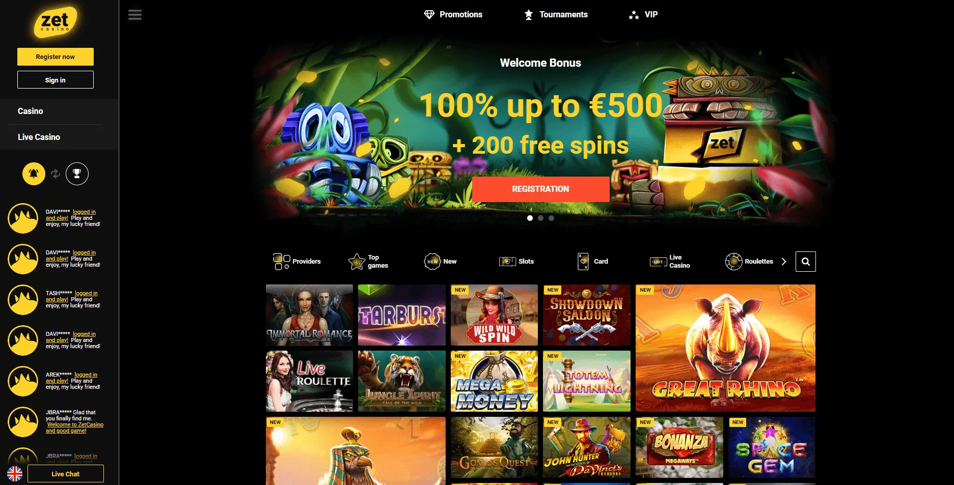 Zet Casino welcomes new players with great bonus, top slot games and live casino section. Modern and nice design creates exclusive online casino experience with clear navigation. Also, ongoing bonuses such as based on loyalty points, reload or cashback perfectly fills the nowadays casino players' needs. Grab welcome bonus and have fun at Zet Casino!